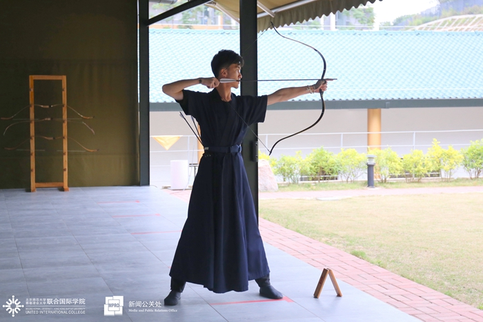 On the second day, the students of the University of Alberta were shown around the campus, which included a visit to the gymnasium as well as UIC’s archery field. They were given an introduction about Chinese archery by the Associate Director of the Students Affairs Office (SAO), Mr Li Junyang, before watching a demonstration by Year 1 Media Arts and Design (MAD) Programme student, Deng Chenyang. Chenyang said he has been interested in Chinese archery since he was young, and he was happy that UIC provided a chance for him to learn it. He had only been practising for three months, but he still managed to hit the target on all his shots.