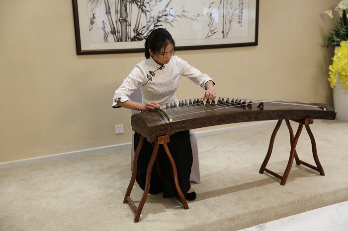 Once the round-table finished, delegates were given a tour of the Presidential Residence on campus and treated to a musical and art performance by UIC students. The first performance was a student playing the traditional pipa, while two students did calligraphy in sync. The second performance was a student playing the guzheng instrument. Prof Ng welcomed visitors to have a tea break after the performance before they embarked for dinner in downtown Zhuhai.