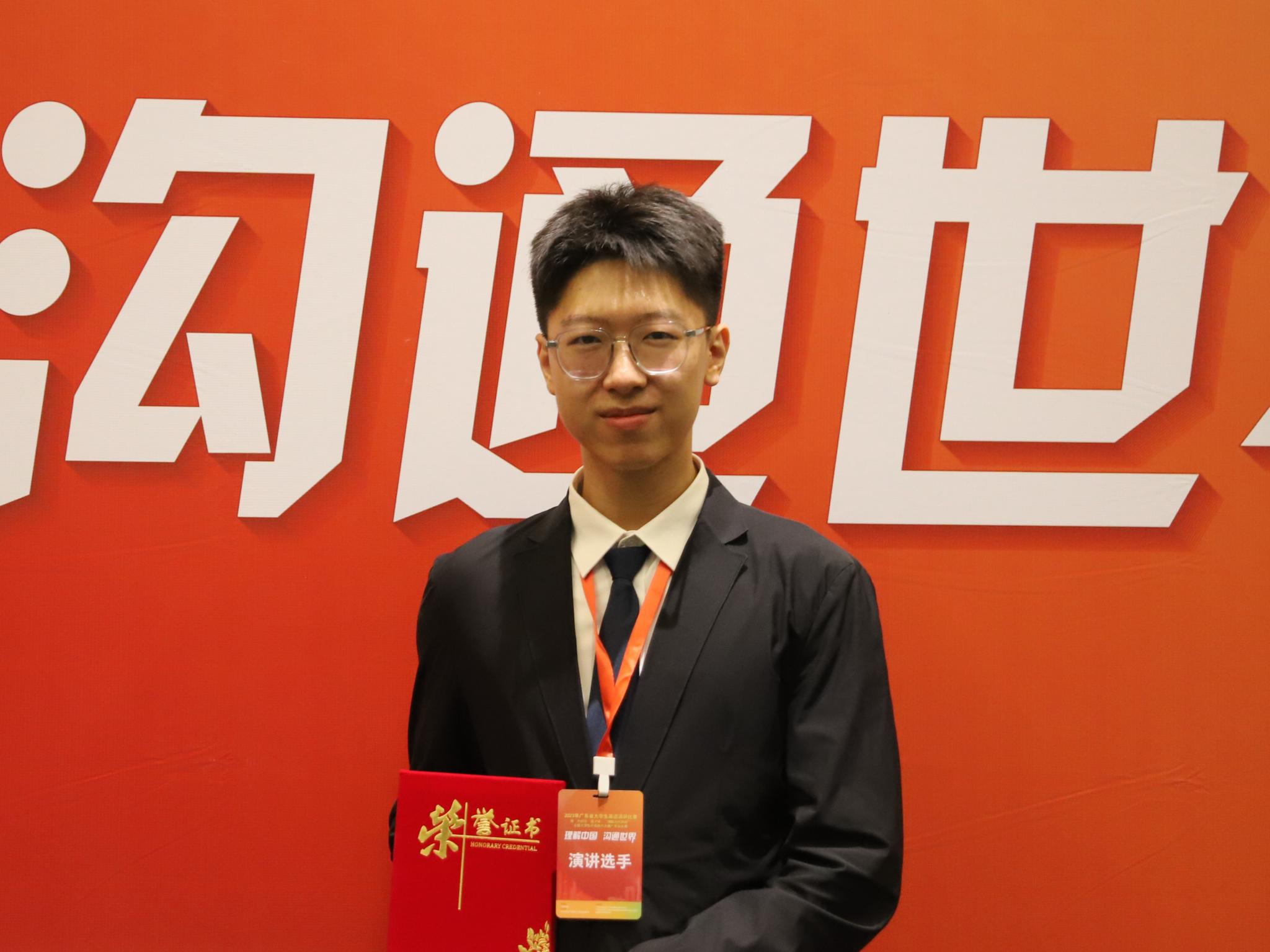 Fourth-year student Zhou Ziqian of the English Language and Literature Studies Programme won the gold award in speaking and expressed his gratitude to teachers’ guidance and support from schoolmates, and said one should be critical when approaching the given topic at the stage.