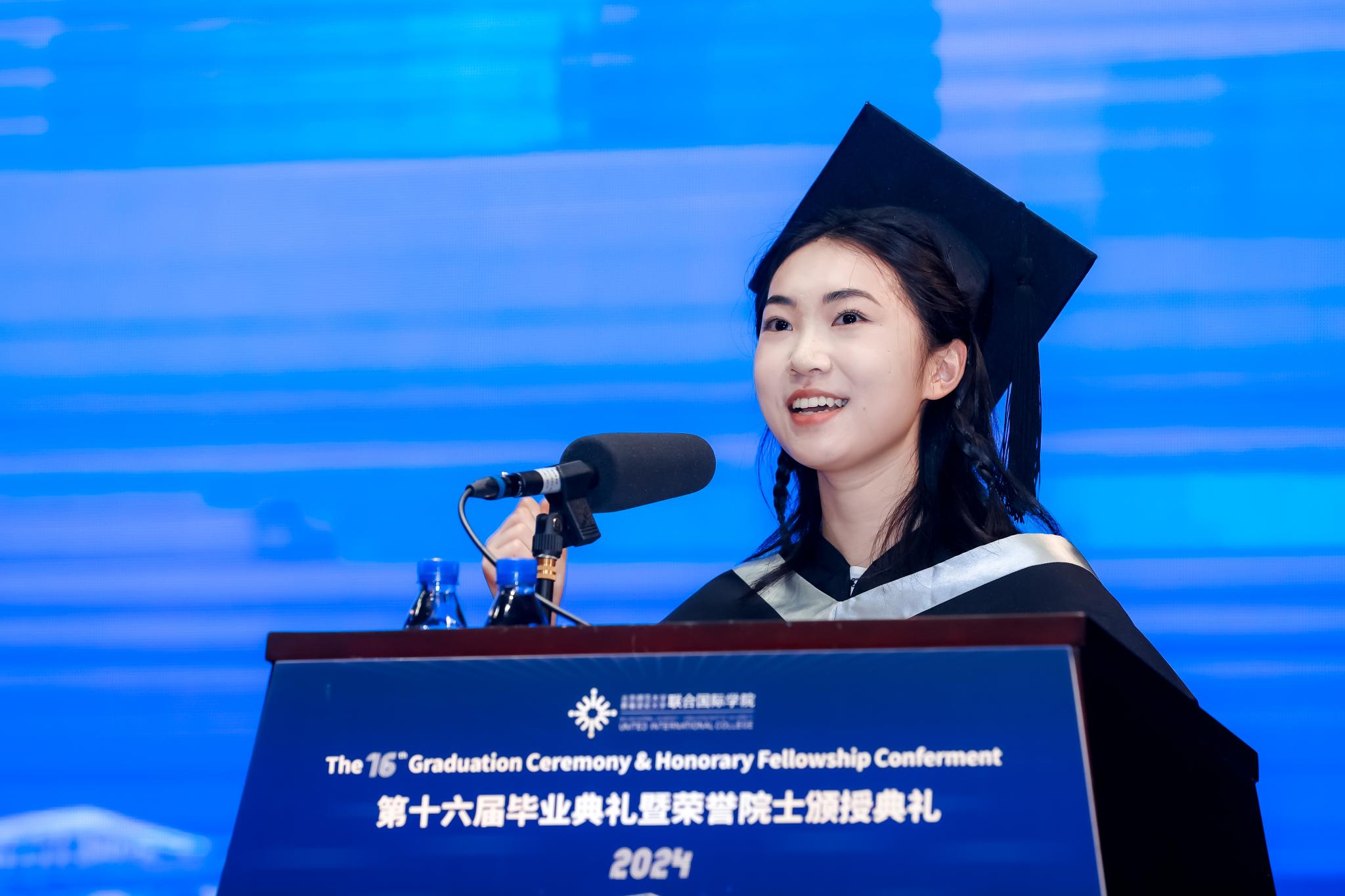 UIC President Prof Chen Zhi congratulated the graduates on the successful completion of their studies and expected them to continue carrying the spirit of liberal arts education into the future, keep exploring, and give back to society and the world what they have learned here. "As I look upon you today, I see the boundless potential within you. In this convergence of Chinese and Western cultures, your actions have the power to infuse the future with hope and shape the world to come," he said.