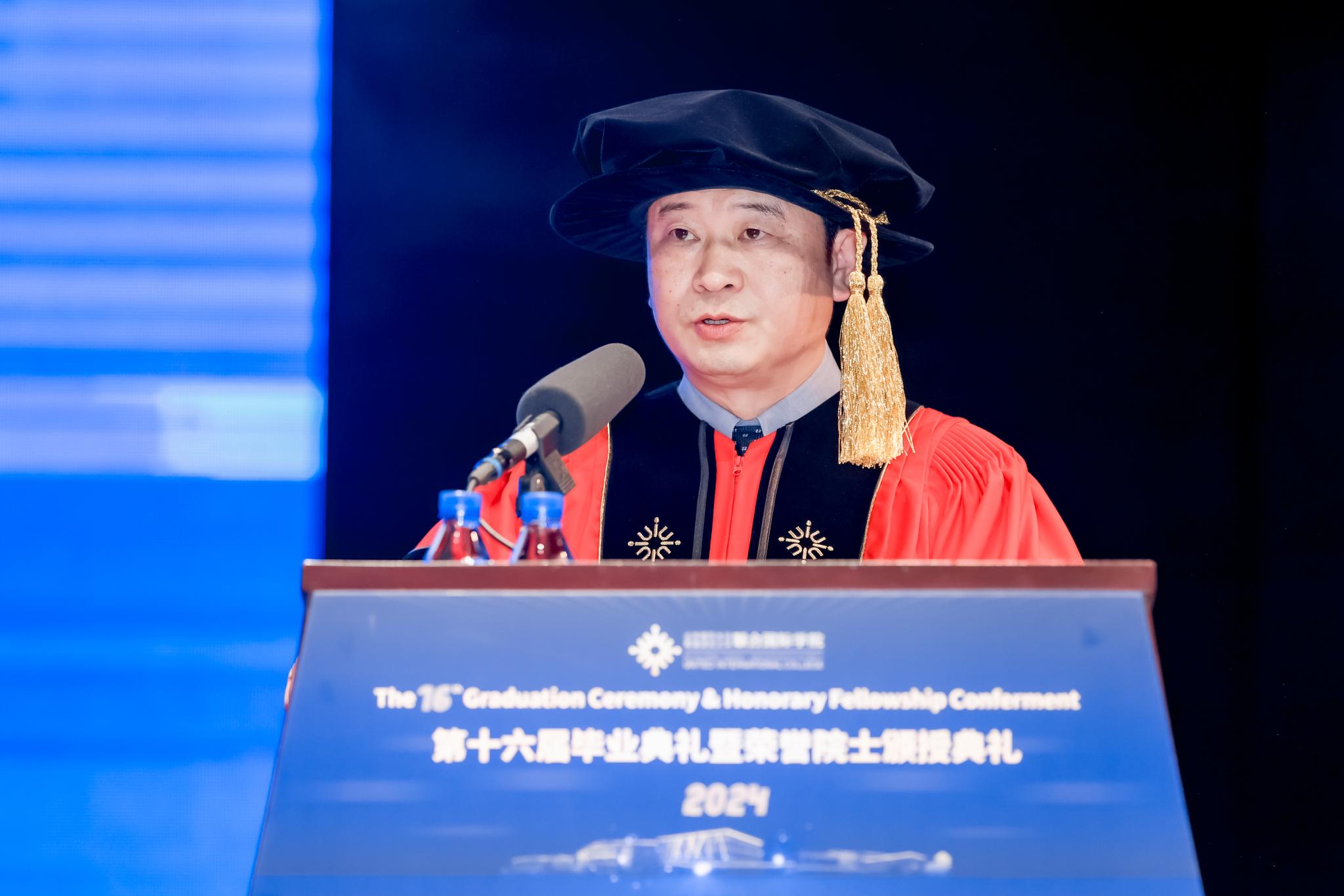 He also shared three advice with the graduates: First and foremost, embrace an open and inclusive mindset; secondly, persist in keeping up with the times and stride towards the world; and finally, embrace a global perspective to explore the world. (Read more: Address to the Graduates - Professor Chen Zhi, UIC President)