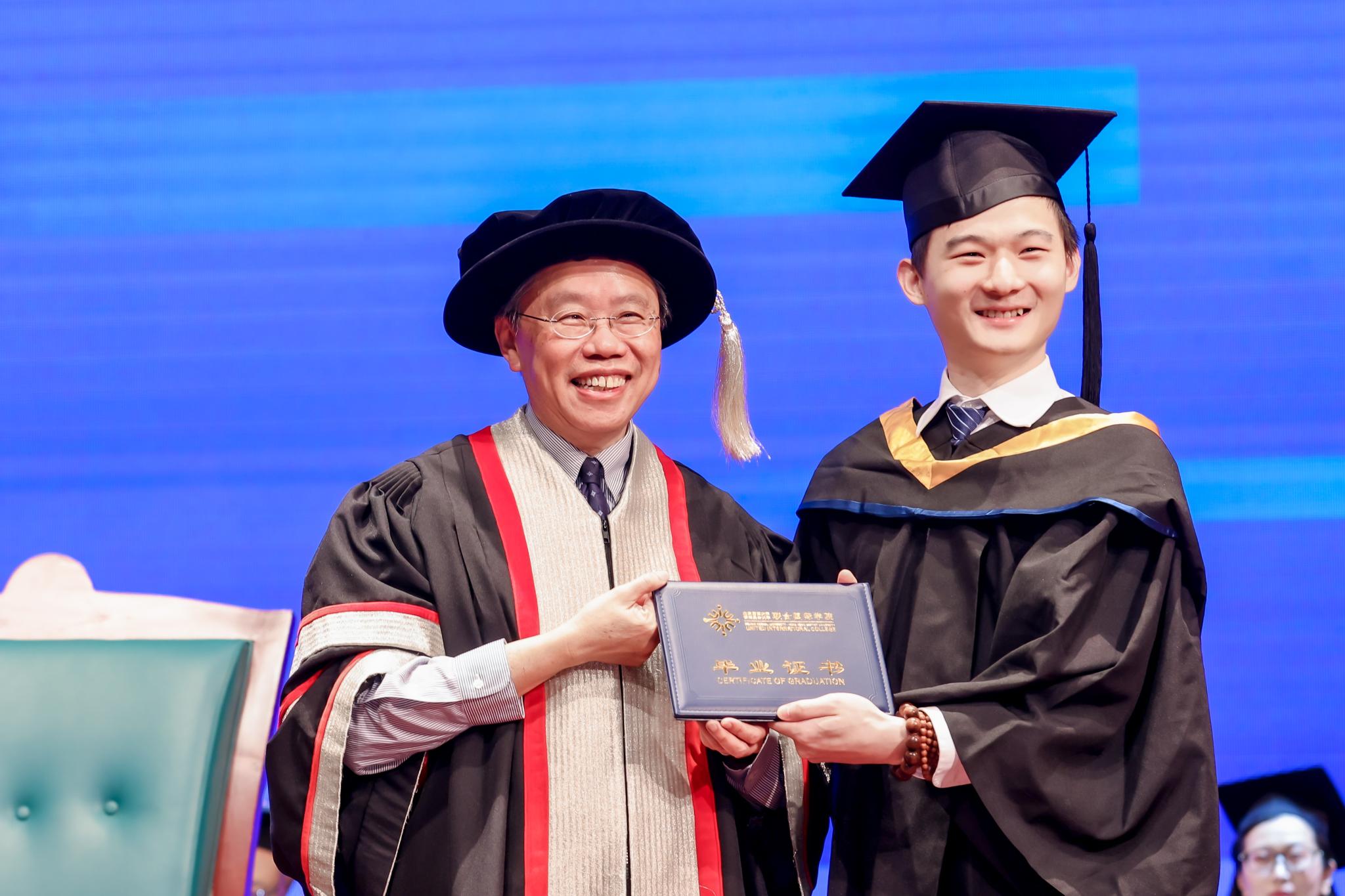 Provost Prof Patrick Chau presents graduation certificates to graduates