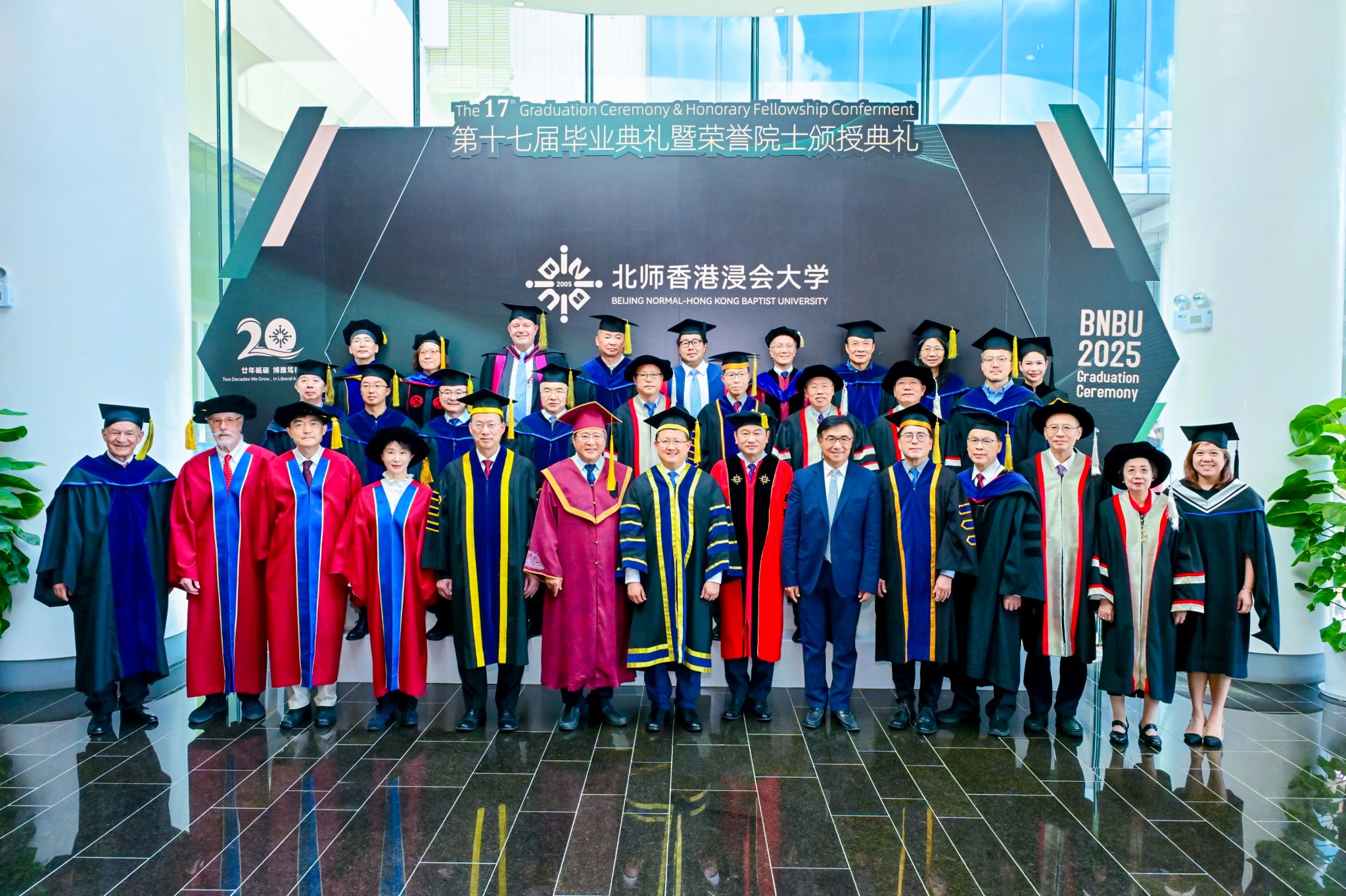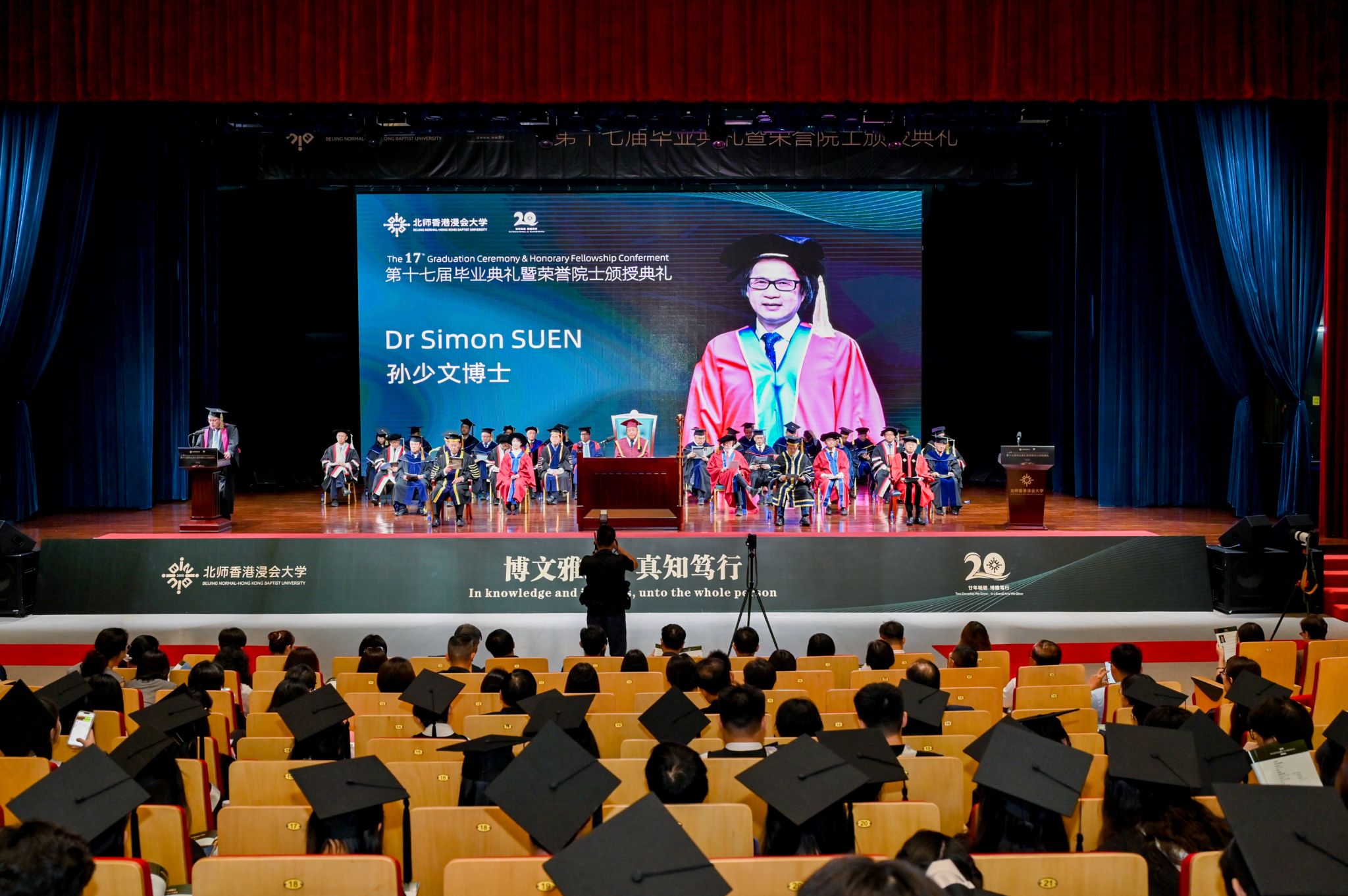 The conferment ceremony was chaired by Chairman of the BNBU Council and Executive Vice President of Beijing Normal University Dr Wang Shoujun. Chairman of the Council and the Court of Hong Kong Baptist University (HKBU) Dr the Hon Kennedy Wong Ying-ho, and HKBU President Prof Alexander Wai attended the ceremony.