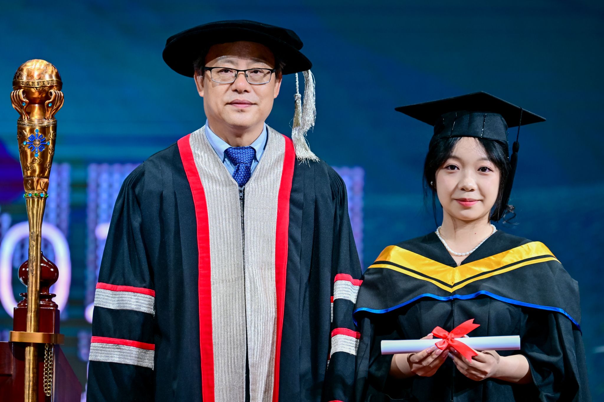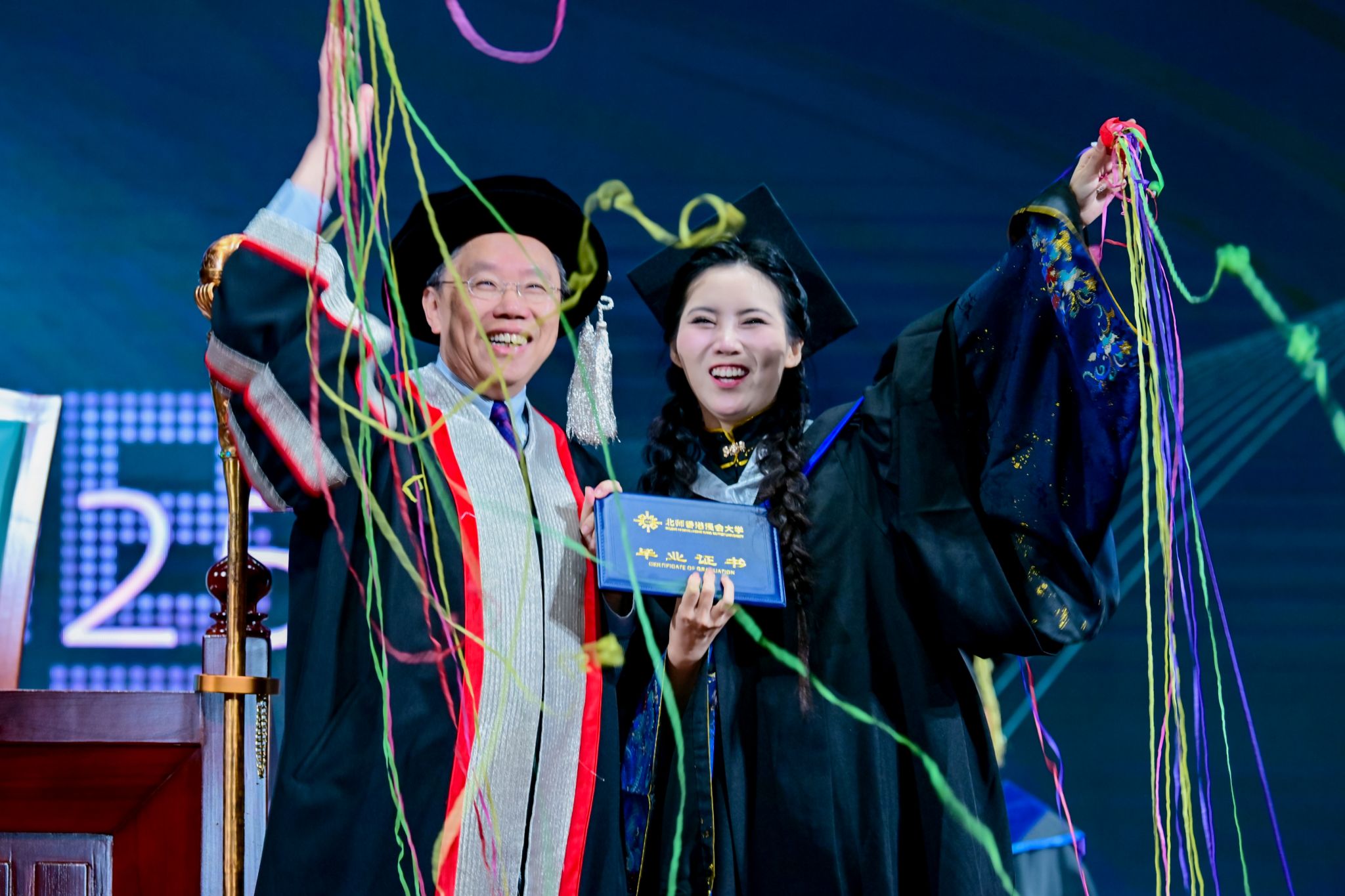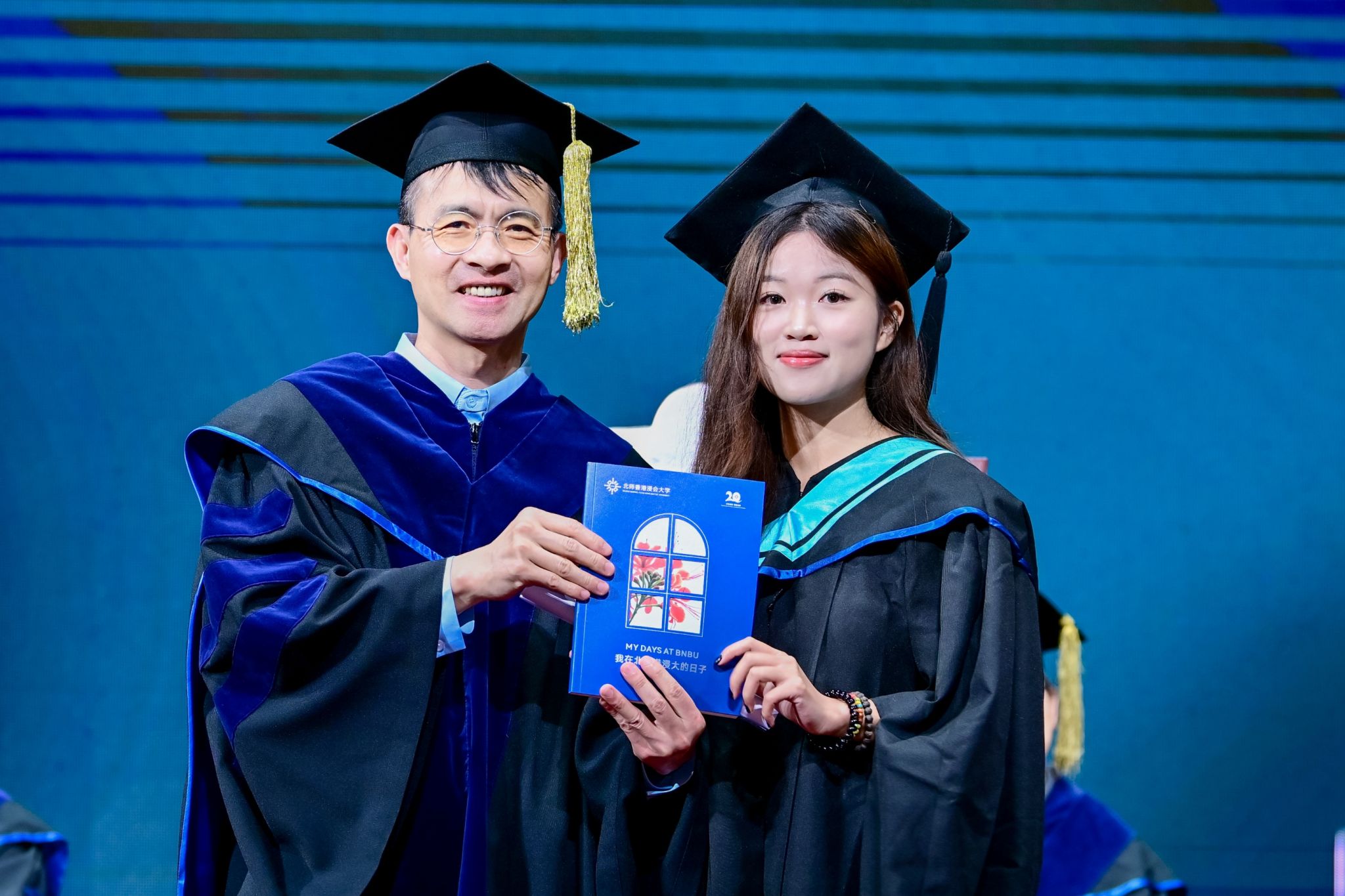 BNBU Associate Vice President (Teaching and Learning) Prof Huang Yu with a graduate