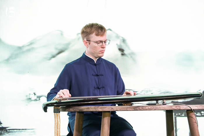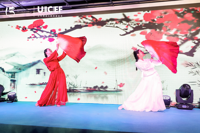 当晚的表演节目也体现了UIC的博雅教育理念和中西合璧的文化氛围。晚宴正式开始前,UIC玉振金声雅乐团带来了鼓乐表演《迎宾曲》;UIC创舞团带来了《书简》,将传统舞与现代融合在一起;英语语言中心的讲师欧阳乐士(Jacob Algrim)则为大家带来了古琴曲《耕莘钓渭》。晚宴在学生阿卡贝拉团队动人的歌声中圆满落下帷幕。