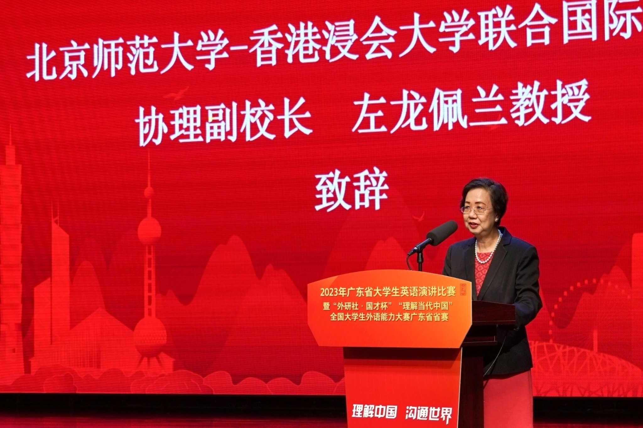 The full name of the competition is 2023 Guangdong Collegiate English Speaking Contest cum Guangdong Provincial Contests of "FLTRP · ETIC Cup" "Understanding Contemporary China" National Foreign Language Contest for College Students, organised by Department of Education of Guangdong Province and supported by committees on English teaching programmes and foreign language disciplines of Guangdong Province, and Foreign Language Teaching and Research Press (FLTRP). It was the first time that UIC held the competition.
