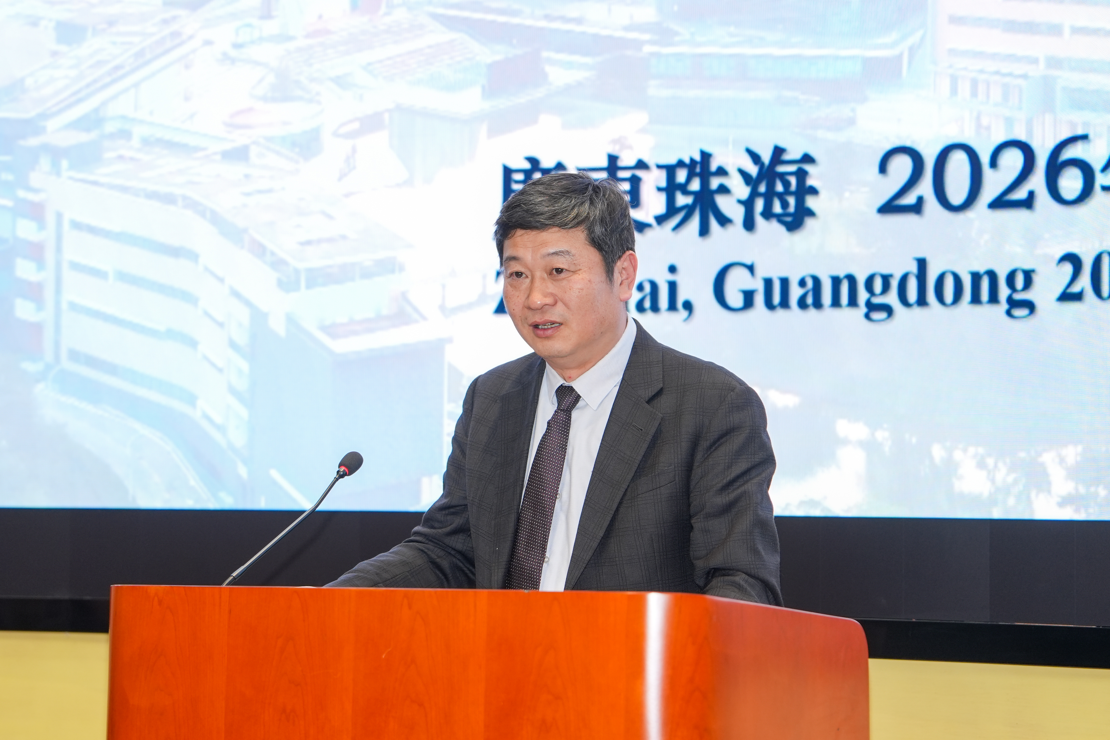 Dean of the School of General Education at BNBU Prof Guo Haipeng introduces BNBU's 2026 admission plan in Hong Kong to the guests