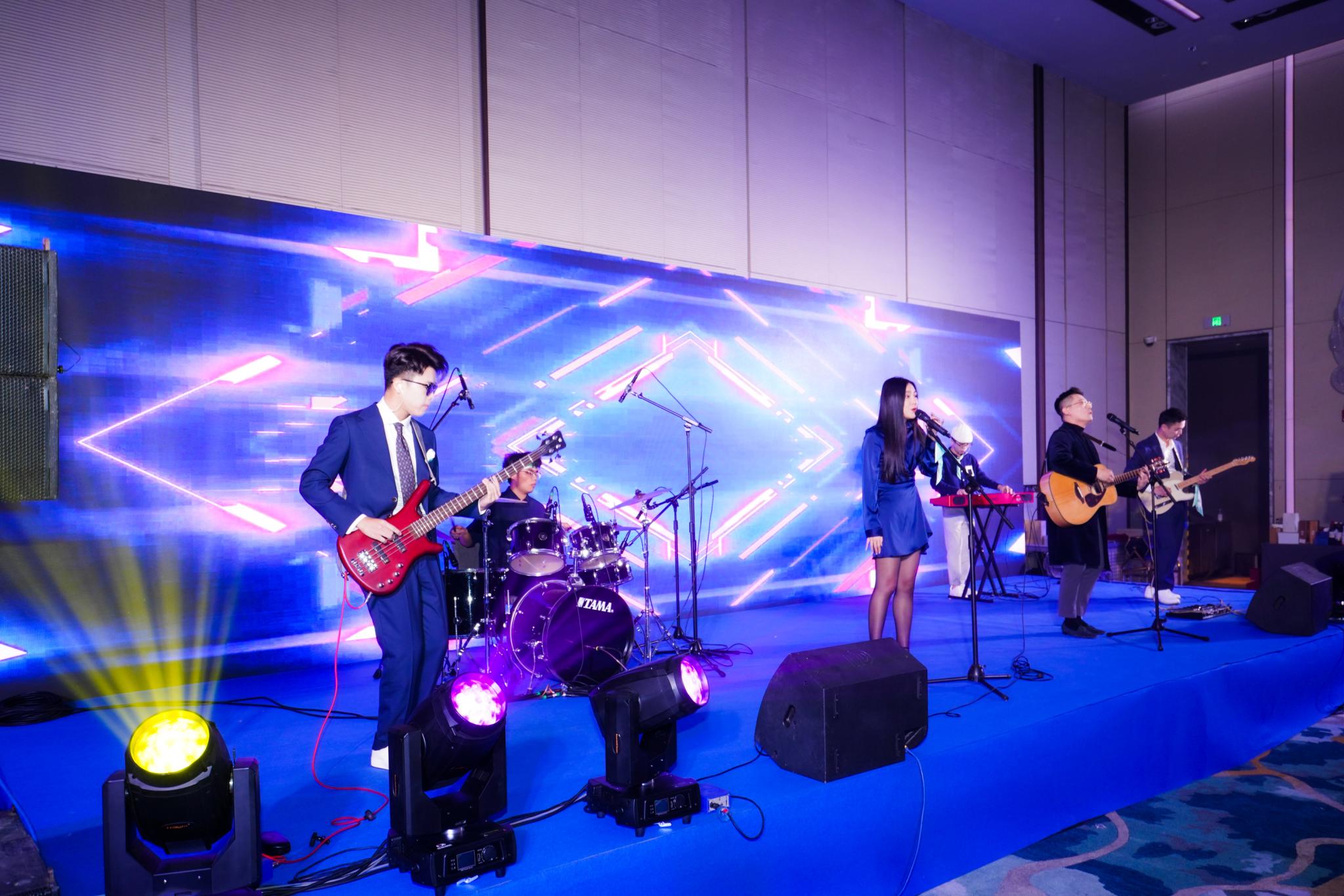 "FYP", a band consisting of five members of the UIC Zhuhai Alumni Association, perform on stage