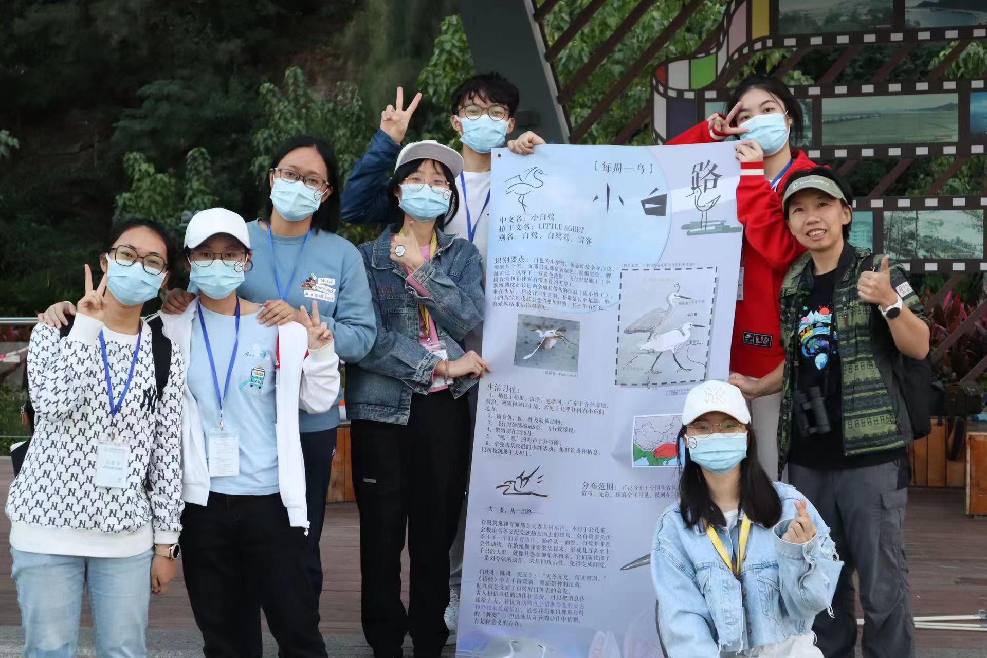 Zhang Jiaqi (3rd from left) in a Little Egret popular science activity in Zhuhai with bird watching team