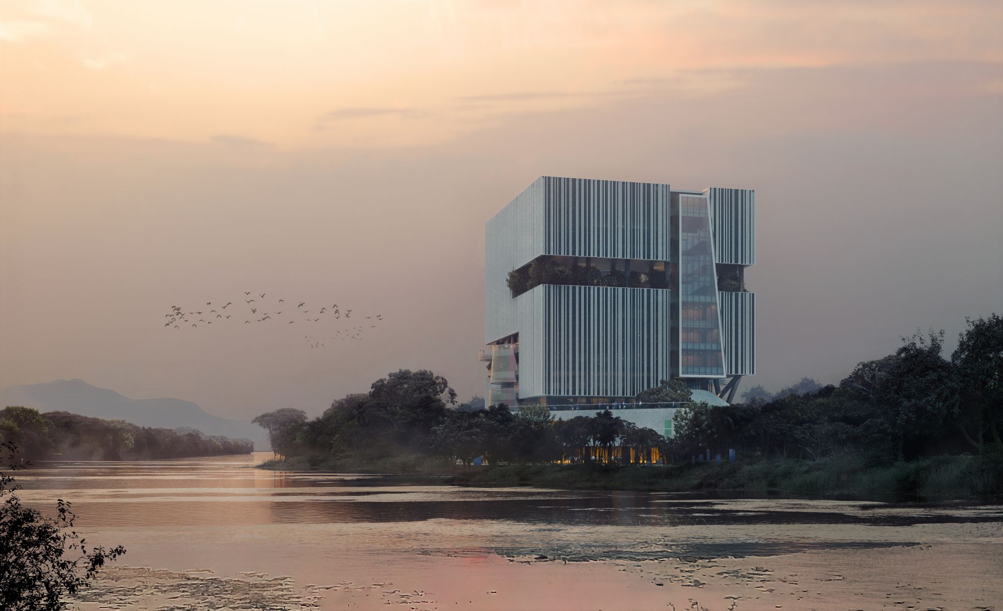 Located at the heart of the Phase II campus, the Learning Resource Centre and Laboratory Complex integrates a multifunctional library, laboratories, shared public service spaces, and a sky garden. The building features a distinctive cubic form that marries architectural order with creative flair.