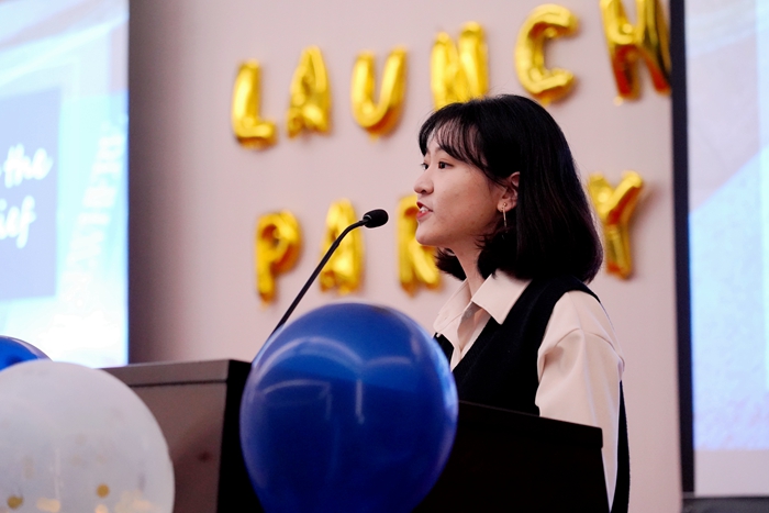Associate Professor and Acting Programme Director of ELLS, Dr Edith Yan, was invited on to the stage to give a speech about the magazine. She began by explaining the history of the magazine by showing the evolution and how it has progressed over the three issues.