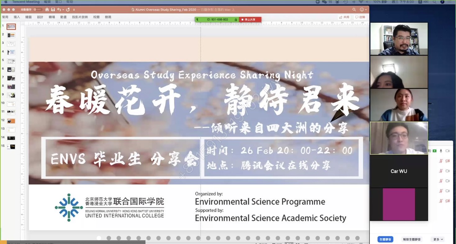 On the evening of 26 February, Environmental Science alumni of UIC, who each went to different well-known colleges and universities overseas for further study, shared their experiences online with UIC students, while also encouraging them to strive for their dreams.