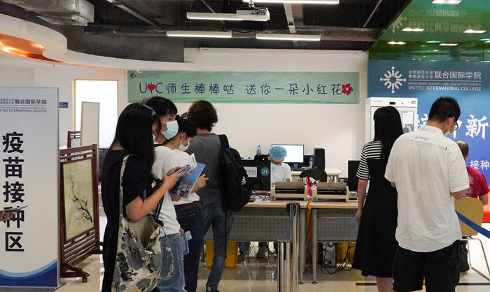 Following Zhuhai's deployment and requirement to better prevent and control the epidemic, UIC organised its students and teachers to get COVID-19 vaccines. The Zhuhai High-tech Zone People's Hospital provided on-site vaccination service from 1 to 2 April. More than 3,000 staff and students have received the first jab.