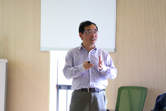 Prof Jin Shi from Shanghai Jiao Tong University gave a lecture titled 'A mathematical journey from the micro to the macro world' on 15 April and introduced the mathematical connections from quantum mechanics, classical mechanics, kinetic theory, and continuum mechanics.