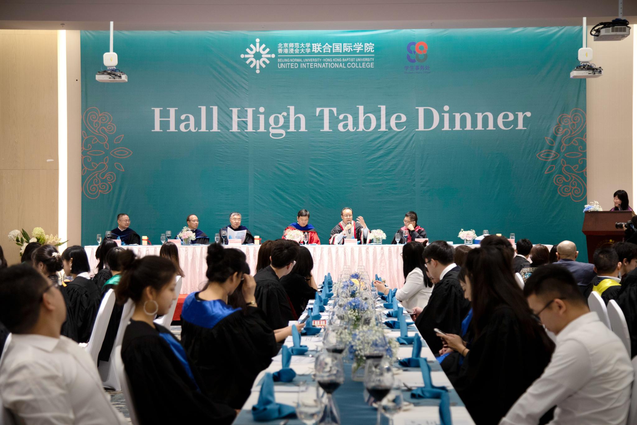 An annual high table dinner for discussing the future direction of hall culture was arranged on 10 November 2021. UIC Provost Prof Chen Zhi, Vice President (Administration) Prof Mao Yaqing, Academic Registrar Prof Li Jianhui, Managing Director for Finance and Administration Mr Nelson Chan, Director of Whole Person Education Office Prof Guo Haipeng, Chief of Student Affairs Officer Prof Johnston Wong and wardens of eight halls attended this event. The members of the Student Hostel Council and resident student tutors were also on the site.