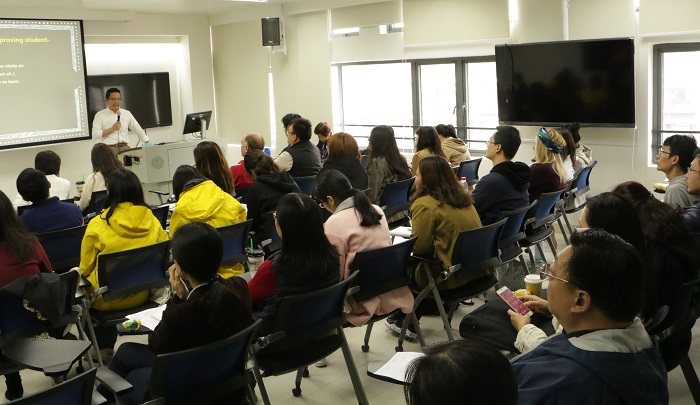 Finishing off the talk was a joint presentation by Associate Professor of Division of Science and Technology (DST), Dr Yi-Lung Kuo, and DST Instructor, Ms Jenny Yang. Dr Kuo began with his talk: ‘Dos and Don'ts for Effective E-Learning Practices’. He explained that when various e-learning practices are adopted strategically to engage students both in and outside classroom, they can improve students’ learning attitude and enhance their comprehension of learning outcomes. Ms Yang presented several dos and don’ts for effective e-learning practices at UIC. She mentioned that faculty should adopt e-learning practices as tools to improve overall teaching effectiveness as well as suggesting that teachers could create their own resource banks of e-learning activities to share with colleagues. Lastly, Ms Yang emphasized that the “one size fits all” does not work for e-learning, and that, instead, educators should incorporate e-learning into their teaching through small learning goals each semester.
