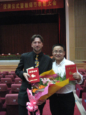 At the Celebration, as the only awarded foreign teacher, Dr. Towey was the center of attention. When a journalist asked him, “what do you think is the most important qualities of a good teacher?” He answered without hesitation, “Passion.”