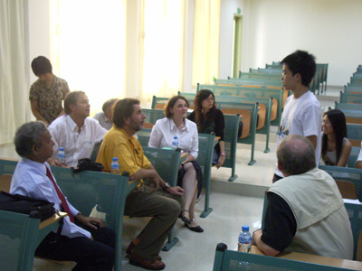 In the morning of 15 August 2006, a meeting was held between Professor Wang, other relative staff of UIC and the German guests. Professor Sarker made a brief introduction of UIC. All of the guests were really interested in the educational approach at UIC, especially in the student exchange plan. Professor Klaus Erdmann, Dean of the Central Branch and Deputy President of Federal University of Applied Administrative Sciences, introduced the Summer Academic Program of their University and showed some pictures taken during the Summer Academic Workshop held in Beijing this year. Professor Paul Hockings, Professor Sarker and Ms. Anna Li, the Deputy Director of our International Section, exchanged their opinions about establishing a cooperative relationship with the German universities. Through their sincere exchange, both sides expressed the intention of cooperating in the future.
