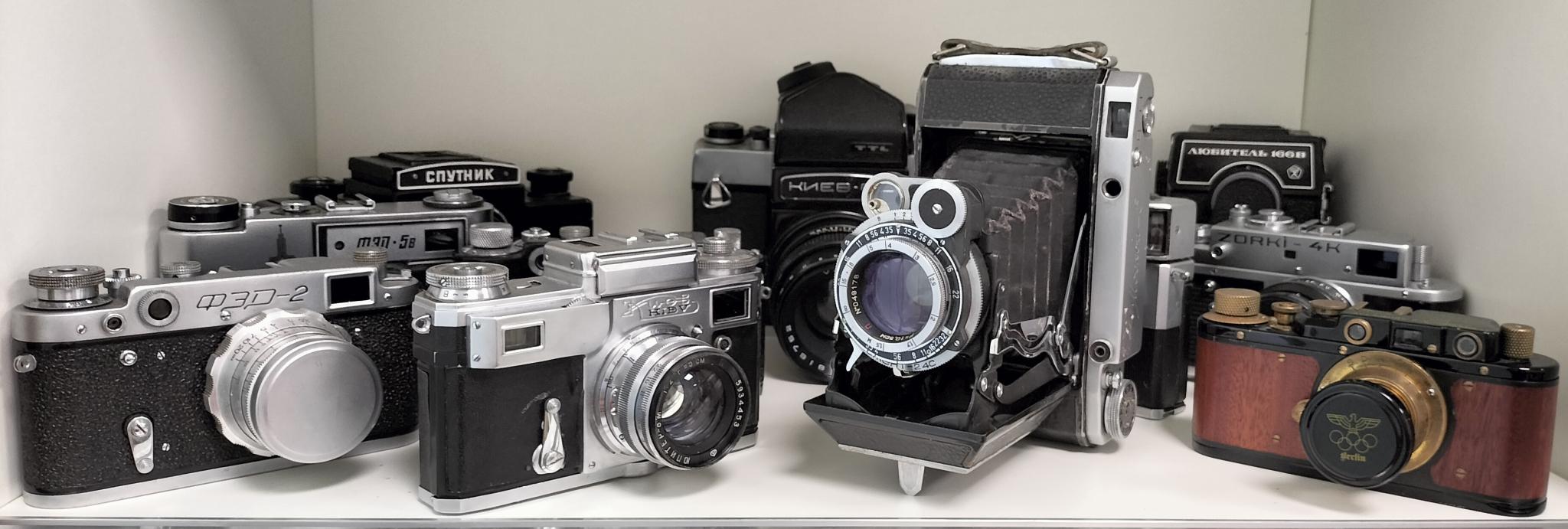 When you walk into Mark Lent’s office in the DCC building on the UIC campus, the cameras command your immediate attention. Over 100 of them actually, and from all corners of the world. “The large one is from World War 2 and was used on a B-17 bomber to photograph the damage done to German targets during bombing raids by allied forces,” he pointed out.