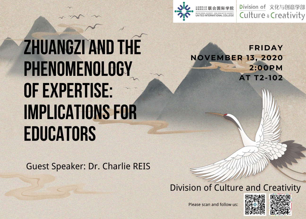 You are cordially invited to attend a Lecture on Zhuangzi and the Phenomenology of Expertise: Implications for Educators, presented by Dr. Charlie REIS (XJTLU) on 13 November 2020. The details are as follows: