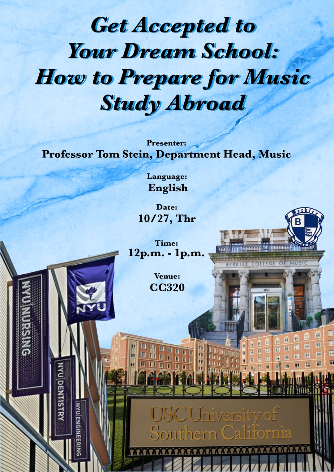 Are you planning to pursue an advanced degree abroad in music? Or thinking of transferring to an undergraduate program overseas?