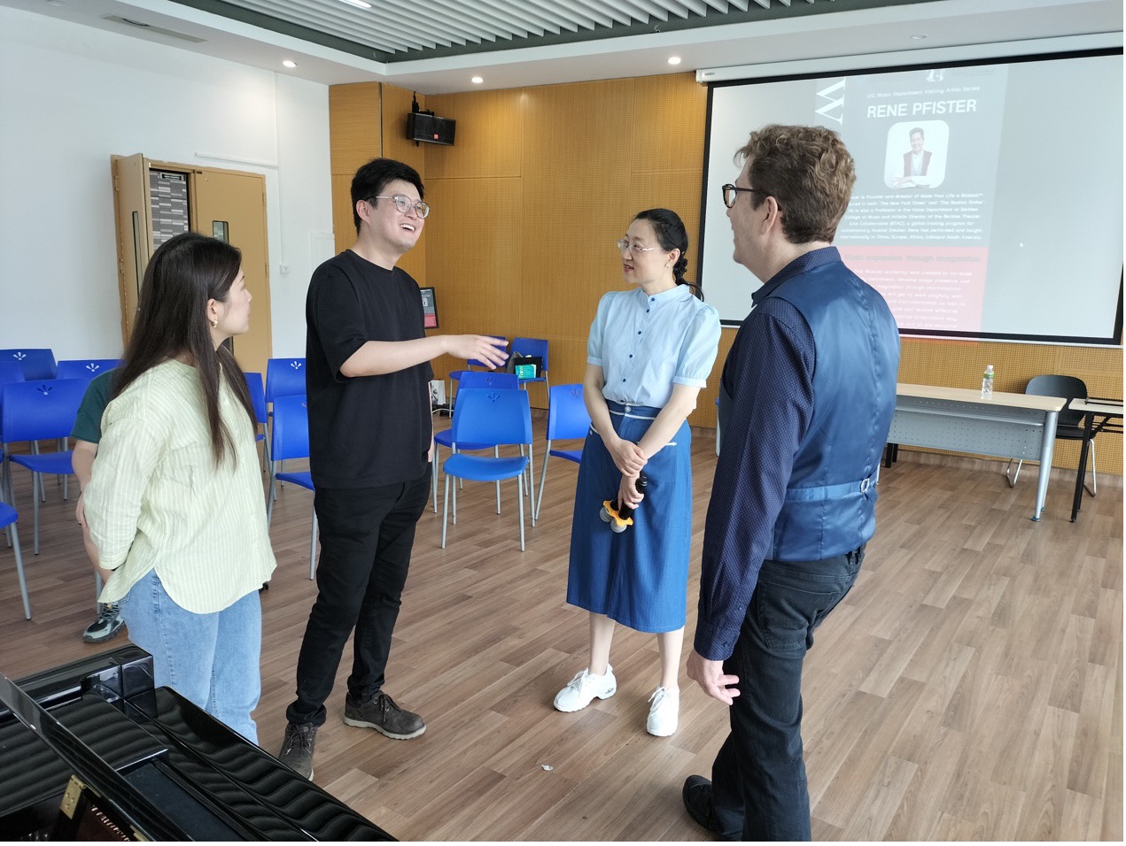 当天的活动围绕“探索集体戏剧游戏,提高对自身的感知和音乐的理解;培养舞台表现力,增强音乐演出的魅力;学习有效地接受和给予反馈,提升音乐表达能力”三个方面的内容展开。RENE教授采用美国的开放式教学模式,借助戏剧游戏等创新方法,引领学生探索音乐表达的无限可能性,使同学们在轻松愉快的氛围中,感受到想象力给音乐表达所带来的美妙体验!