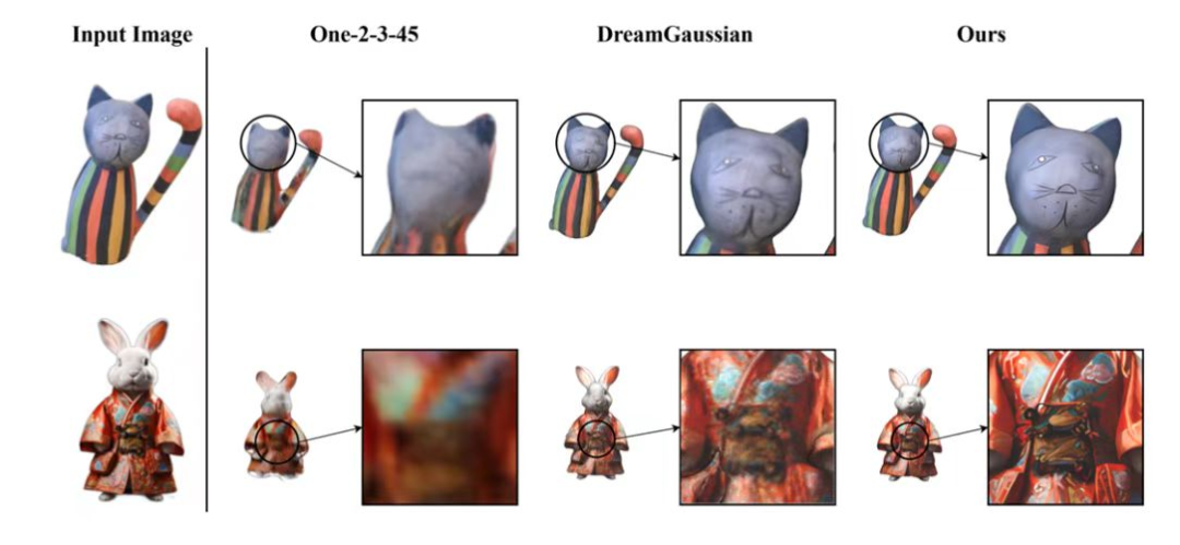 计算机科学与技术专业2021级本科生刘俊邦、黄恩培在张慧教授指导下完成的论文《对比高斯:基于对比学习与高斯溅射的高保真三维内容生成》(Contrastive Gaussian:High-Fidelity 3D Generation with Contrastive Learning and Gaussian Splatting),则关注到计算机领域的另一热点:由单视图图像生成三维内容。