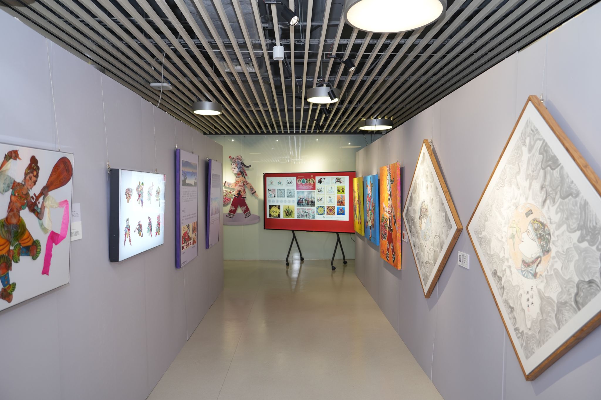 揭幕当天,湖南皮影非遗传承人朱龙与宋伟军先生带来了精彩的皮影戏表演《岳飞平金》。此外,艺茗堂艺术空间里还展出了北师港浸大百余件师生艺术佳作,吸引了大量师生驻足观看。