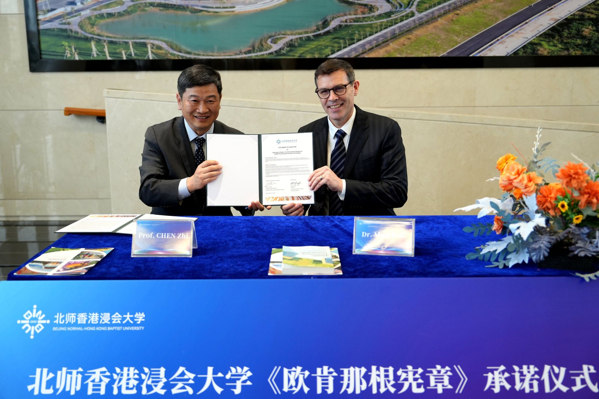 2025年11月3日,北师香港浸会大学(BNBU)举行《欧肯那根宪章-健康促进高校国际宣言》签署仪式,正式加入此项全球性的健康促进行动,成为中国首所签署该宪章的高校。值得一提的是,该宪章的官方中文版本由北师港浸大的师生翻译完成。