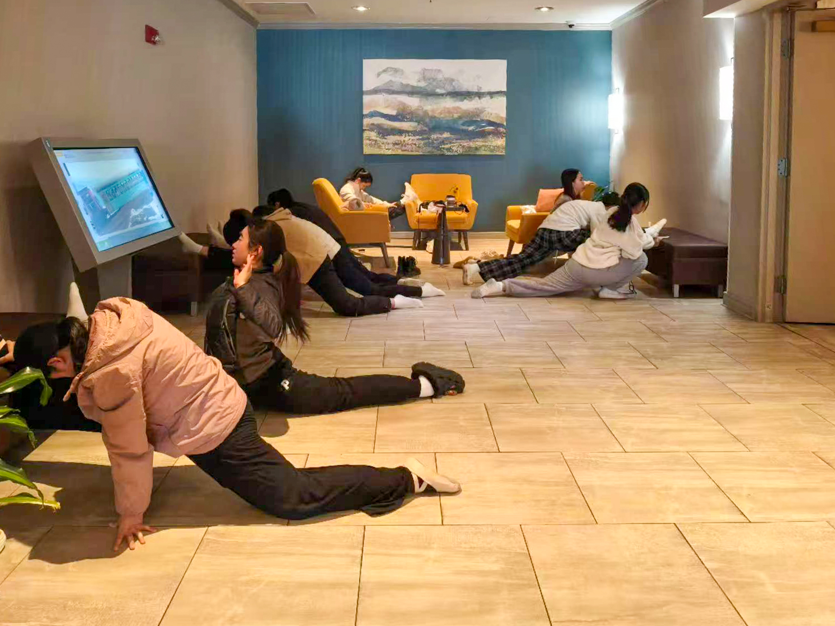 舞队成员在酒店加练中