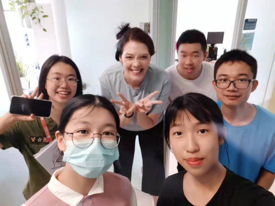 王璐璐(右一)逐渐习惯用英语与同学交流
