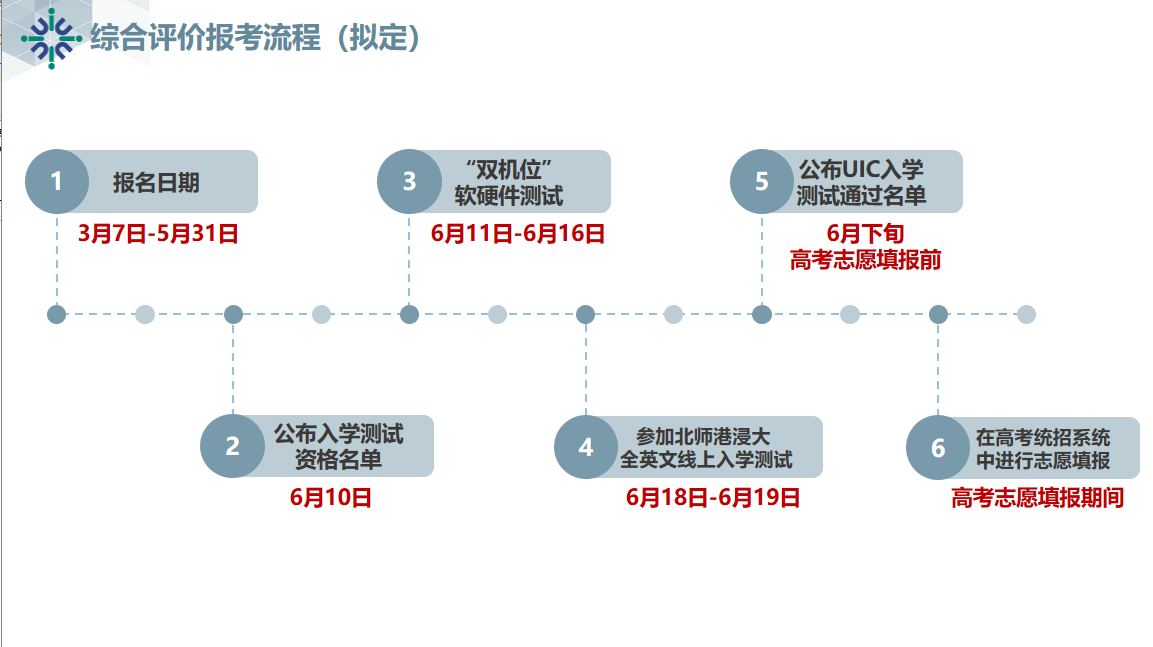 UIC的综合评价报名系统将开放至5月31日,以下重要时间点请考生收藏、关注: