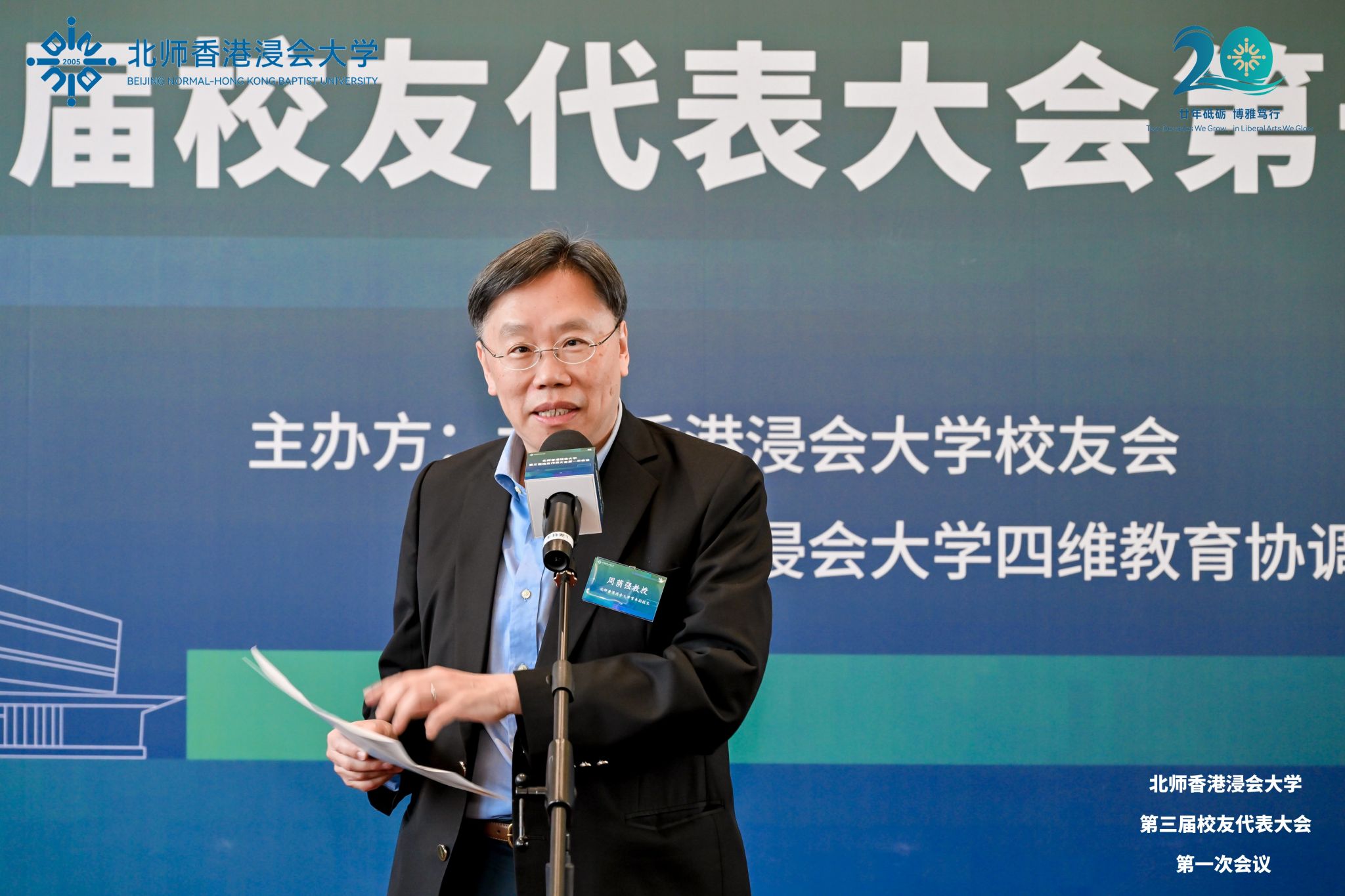校长陈致教授在会议上表示,各界校友齐聚一堂共襄发展,令他倍感欣慰。他指出北师港浸大致力于打造让校友感受温暖的家园。他坚信在广大校友的支持下,学校和校友会都将迎来更加蓬勃地发展。