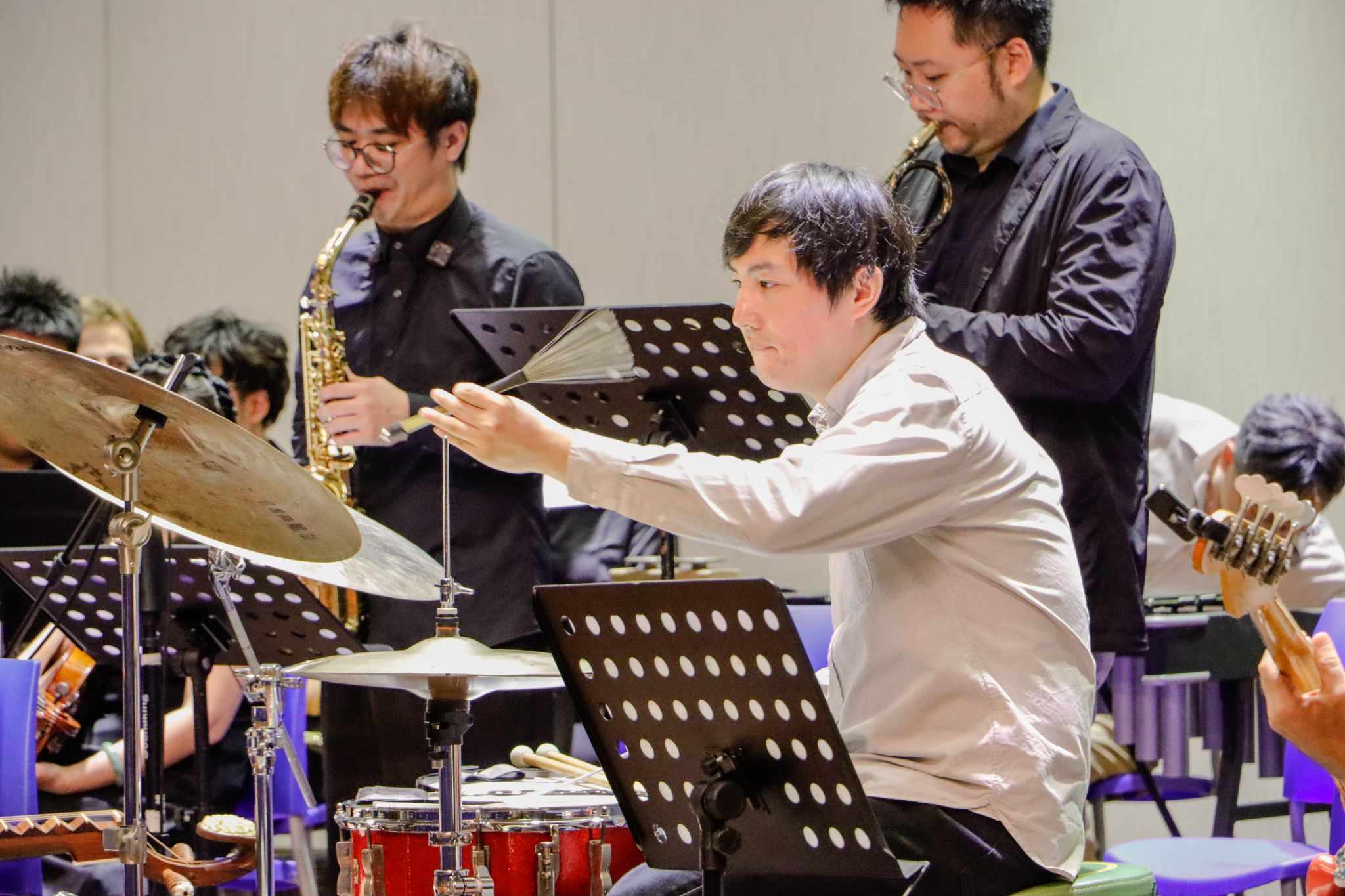 而当传统戏曲遇上流行乐,又会碰撞出怎样的火花?音乐会正式开始前,北师港浸大音乐系师生以乐会友,携手戏曲界嘉宾,与乐团合作呈上一场穿越古今、跨越山海的交流表演。爵士×粤剧《花好月圆》、放克×京剧《苏三起解》,以及打破苍凉激越印象的爵士×秦腔《麻鞋底》,一系列极具创意的改编让人耳目一新,赢得台下掌声连连。