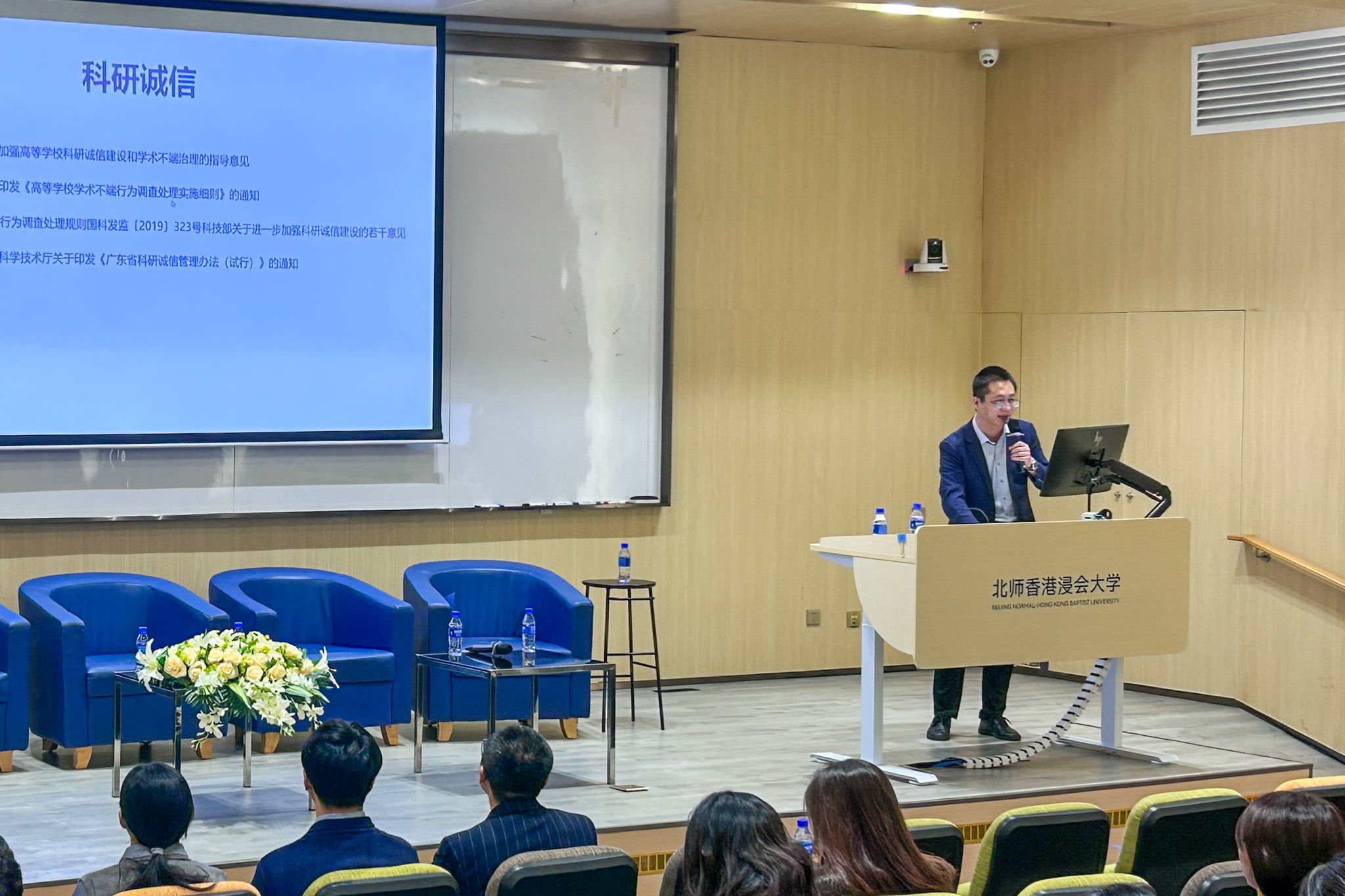 副校长(研究和拓展)潘建新教授指出,建校20年来,学校已经在科学研究、学科建设、人才培养和国际化办学等方面取得了显著进展,逐步探索出一条研究型博雅大学的发展之路。他强调,申请政府科研基金,对学校提升科研水平与扩大学术影响力具有重要意义。