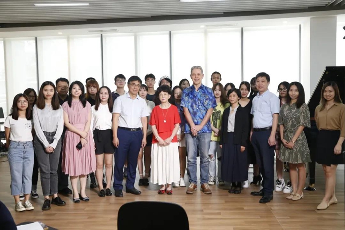 三位歌唱家随后与校长汤涛、副校长毛亚庆、文化与创意学部院长Holger Briel等人交流,探讨了UIC音乐表演专业的发展和合作可能性。