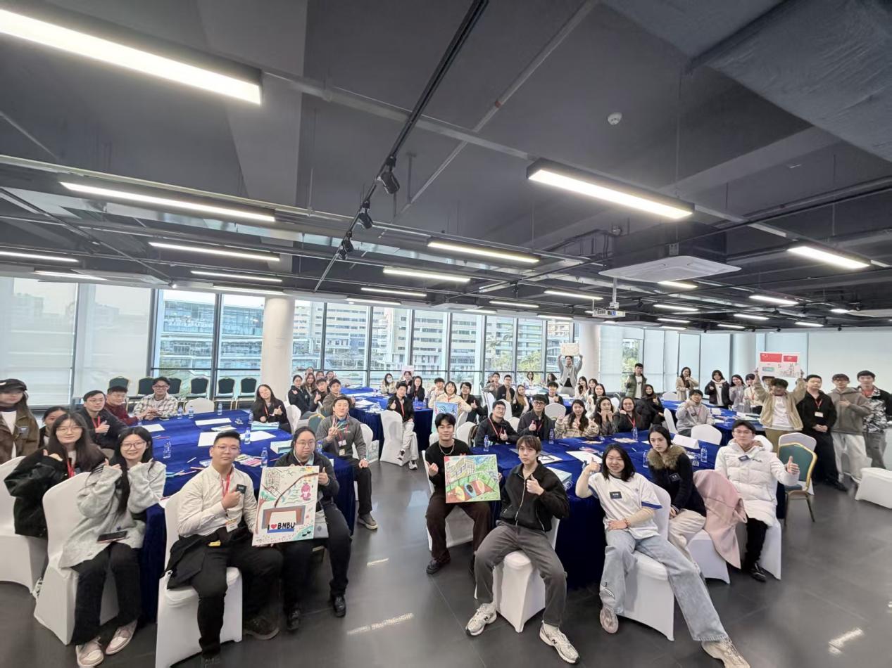 考察团首先听取了学校办学理念与发展特色的介绍,随后参观校园,切身感受BNBU融汇中西的博雅教育氛围。在团体小组活动中,北师港浸大20余名学生参与交流,两地青年围绕“BNBU印象”共同创作画作,并在互动中就学业体验、湾区发展等话题畅聊,现场氛围热烈。