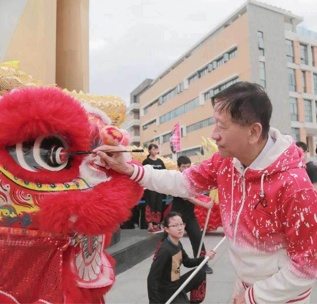 2018年,吴清辉教授在校运会开幕式给舞狮点睛