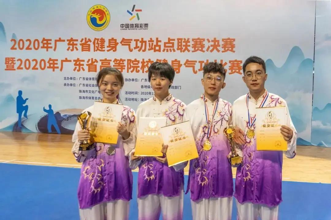 今年12月,北师港浸大健身气功校队在2020广东省健身气功站点联赛决赛暨2020广东省高等院校健身气功比赛,五禽戏传统功法和八段锦传统功法项目中分别荣获一等奖。成员在个人项目上也斩获佳绩,辛昇阳(2018级统计学)获五禽戏传统功法第一名,张文博(2018级应用心理学)获六字诀竞赛功法第一名,翁慧中(2018级影视学)获八段锦传统功法第四名,孙意芸(2019级会计学)获六字诀传统功法第二名。