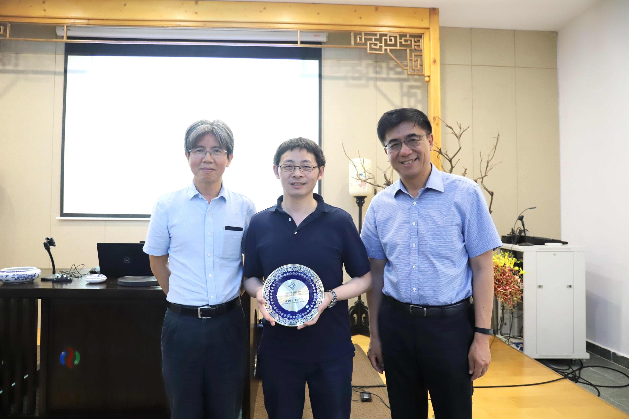 汤涛教授、黄华雄教授为明平兵教授(中)赠送纪念品