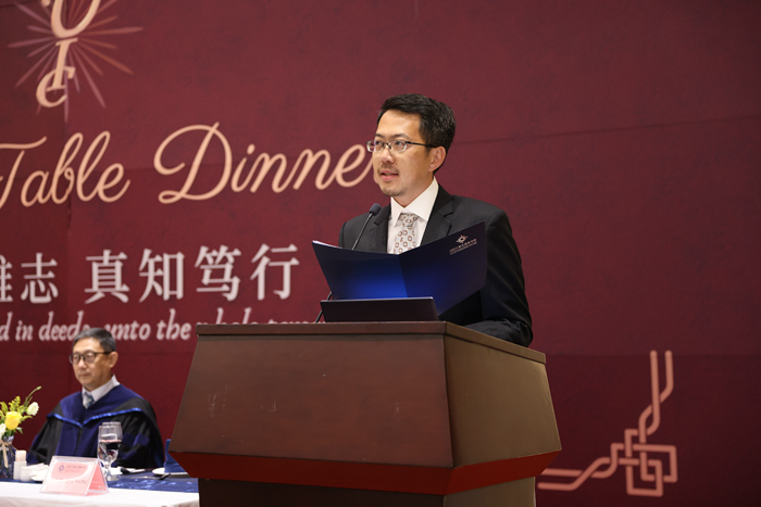 出席本次晚宴的高桌嘉宾还有:北师港浸大副校长(学术)、理工科技学部院长黄华雄教授,党委书记、副校长(行政)毛亚庆教授,教务长李建会教授,文化与创意学部院长Holger Briel教授,理工科技学部副院长雷波教授、侯远坦博士,讲座教授王庆国教授。