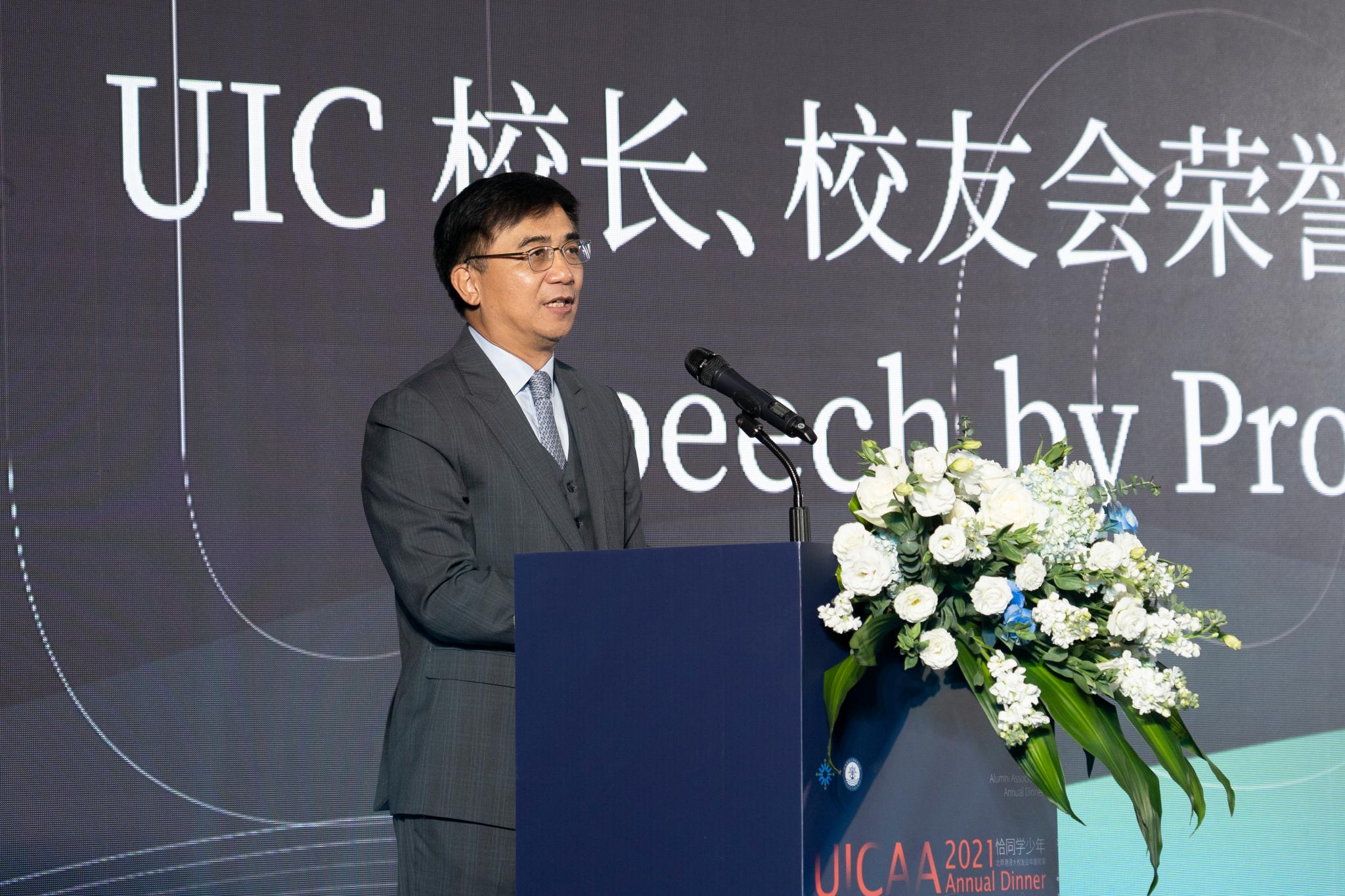 校长、校友会荣誉会长汤涛教授在致辞中介绍了UIC的发展、二期校园建设、人才引进等情况,在粤港澳大湾区的建设中,UIC未来可期。汤涛校长对校友寄予厚望,期待校友、校友会与母校共同发展。