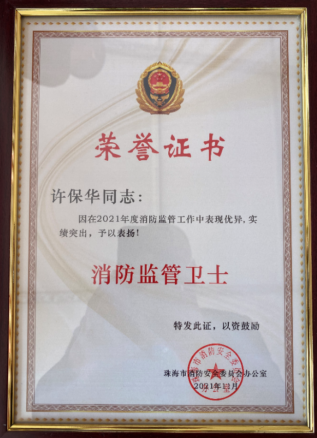 许保华自2007年起负责UIC安全保卫工作,曾多次荣获省厅、区、校级多项荣誉及表彰,他始终把维护校园安全稳定作为首要任务,14年如一日恪尽职守,将消防安全管理和措施融入到日常监管的各个环节中。督促学校物业及商铺员工落实消防安全措施,筑牢了安全防控保障基础。