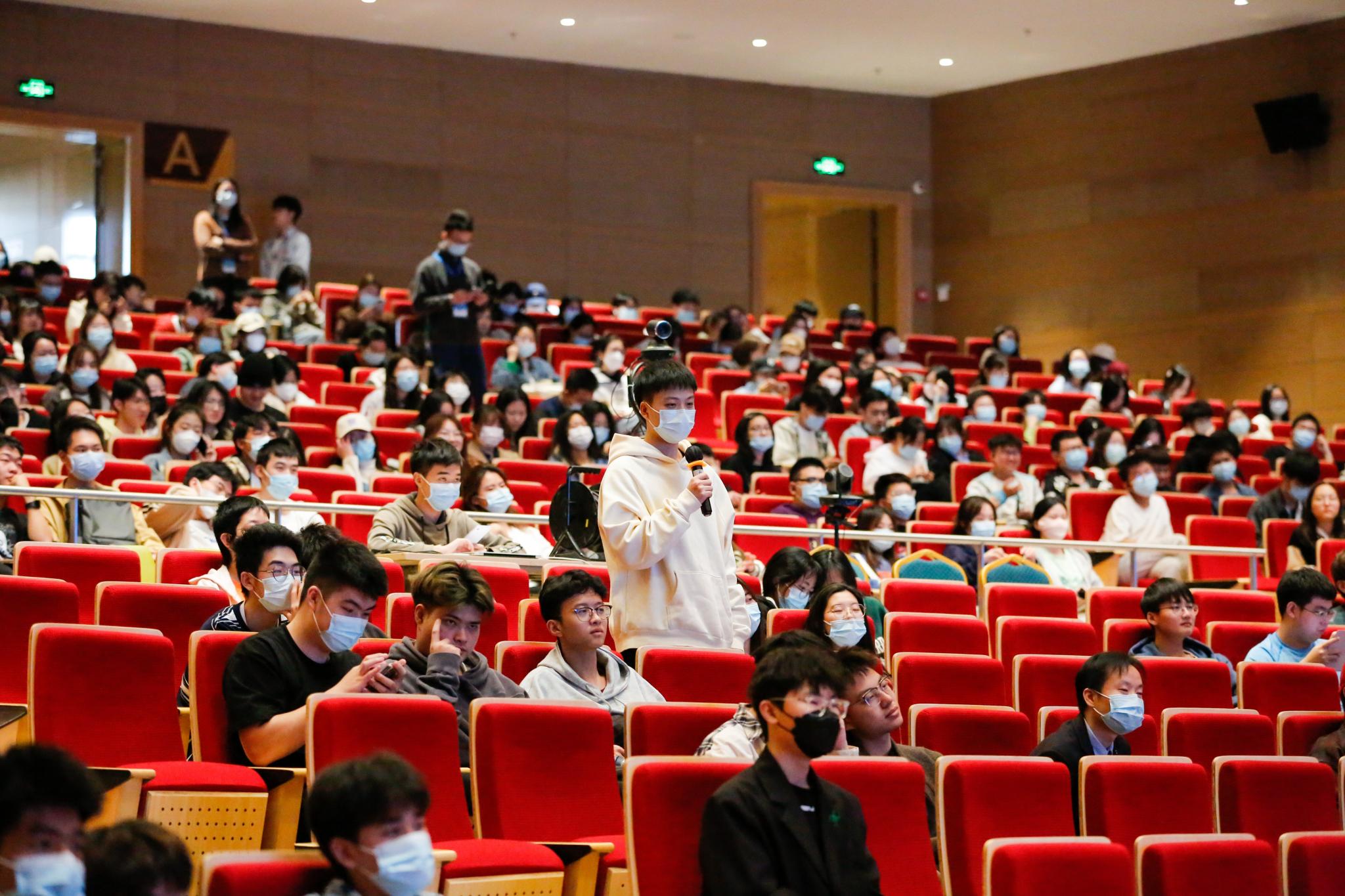 在问答环节,同学们踊跃提问,并表达自己的看法和观点,就学校的未来和教育的发展与汤校长展开热烈的讨论与交流。