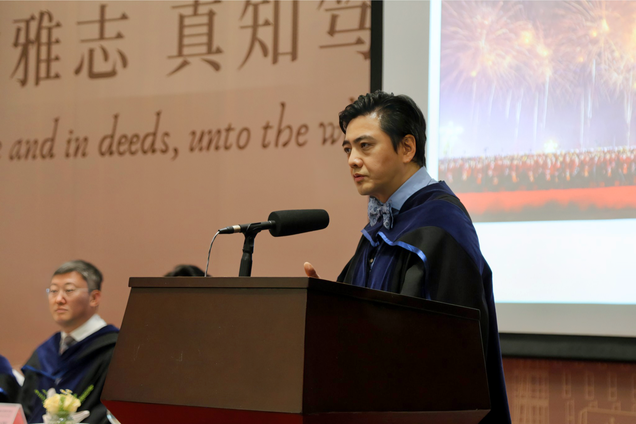 文化与创意学院执行院长蒋崴博士向陈擎教授致谢,他感谢陈擎教授一直以来对音乐表演专业的支持,也希望热爱音乐的同学能够有更多的机会听到陈擎教授的分享、在专业领域得到陈擎教授的指导。