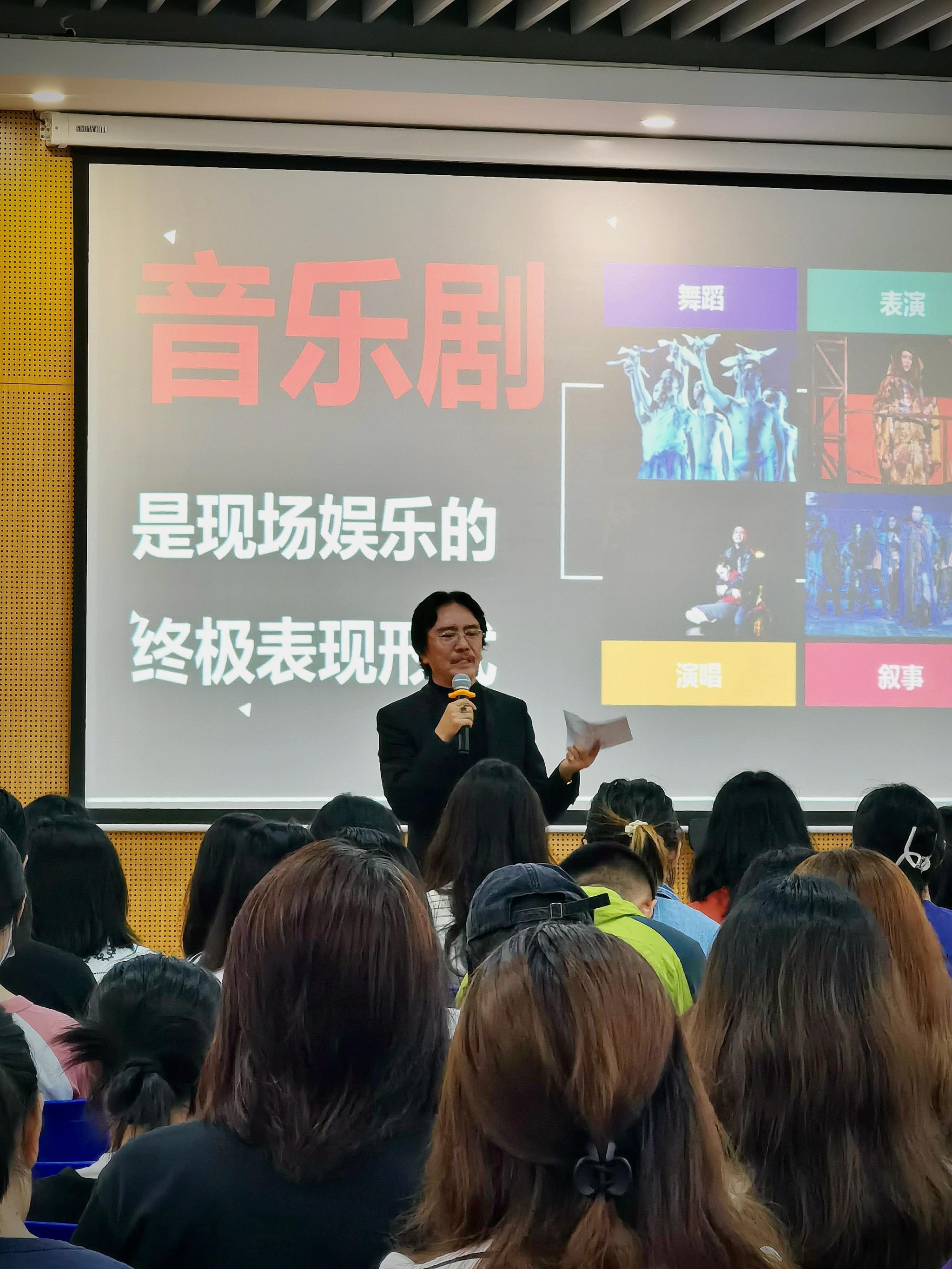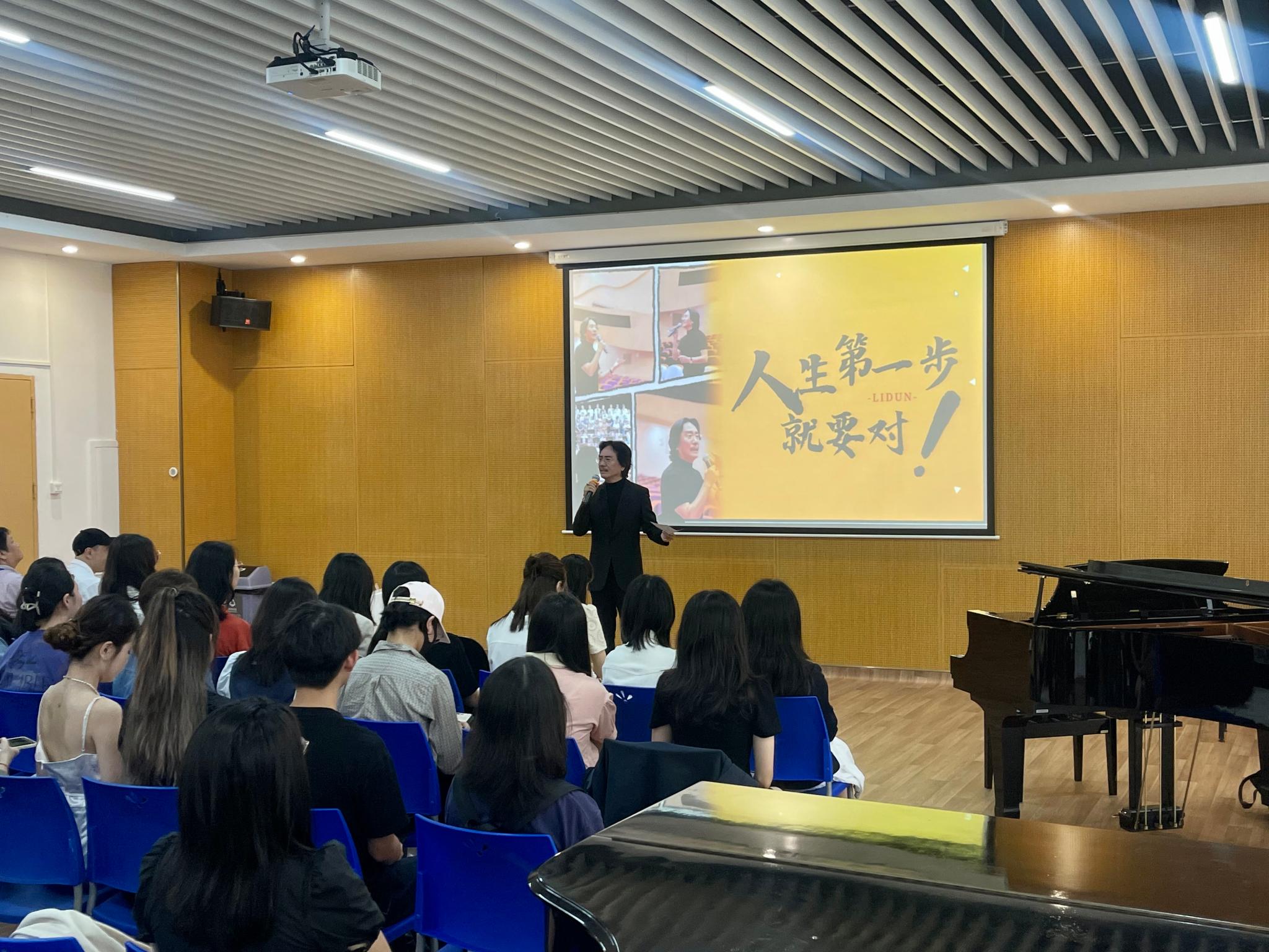 2023年10月20日,中国著名原创音乐剧制作人李盾应文化与创意学院音乐系的邀请,来校作了题为“人生第一步就要对”的讲座,分享了音乐剧的艺术特点与表现形式,当代中国音乐剧的现状与趋势,以及对音乐剧如何引领音乐审美教育的独到见解。