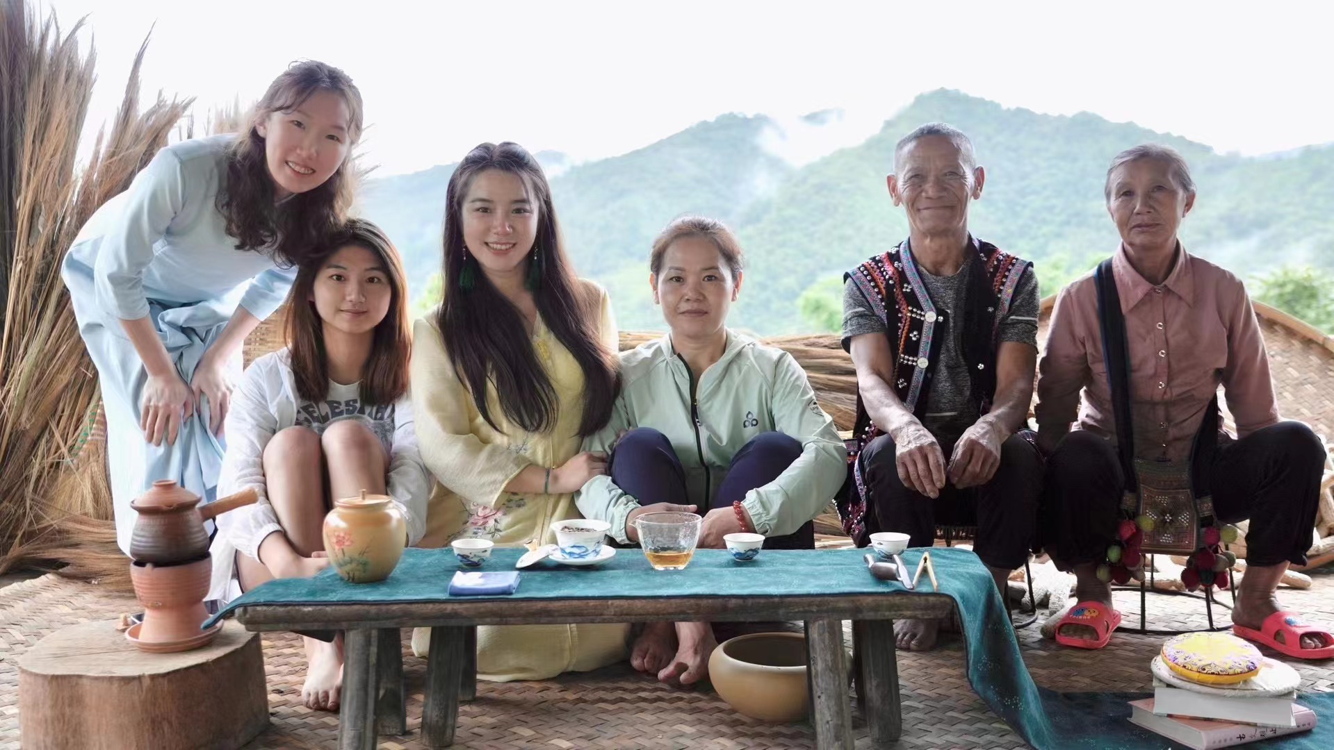 苏予涵(左一)和剧组在云南普洱