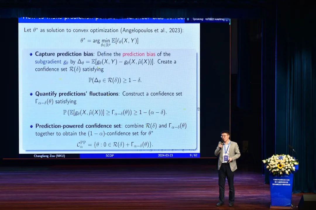 覃红教授还宣读了中国数学会均匀设计分会第三届、第四届理事长刘永才院士的书面致辞。刘院士热烈祝贺均匀设计分会成立三十周年,并期待分会在新的形势下能够持续发展壮大,取得更大的成就。开幕式结束后,中国科学院数学与系统科学研究院孙六全研究员、南开大学邹长亮教授、北师港浸大方开泰教授分别作了题为《Large-scale survival analysis with a cure fraction》《Selective predictive inference》《用L₁距离的代表点构造混料均匀设计》的大会特邀学术报告。