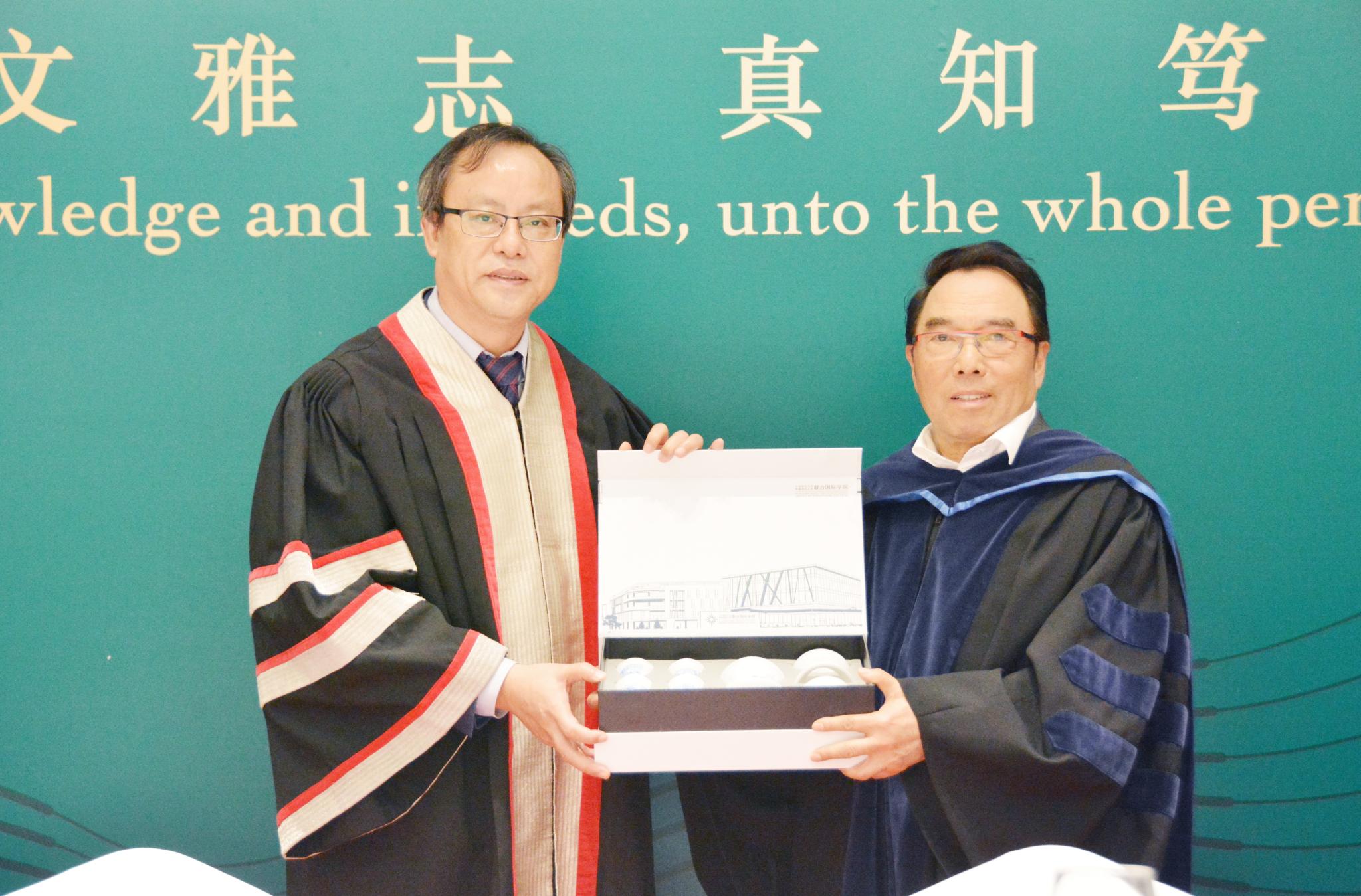 北师港浸大党委书记、副校长(行政)毛亚庆教授为沈国放先生授予纪念品