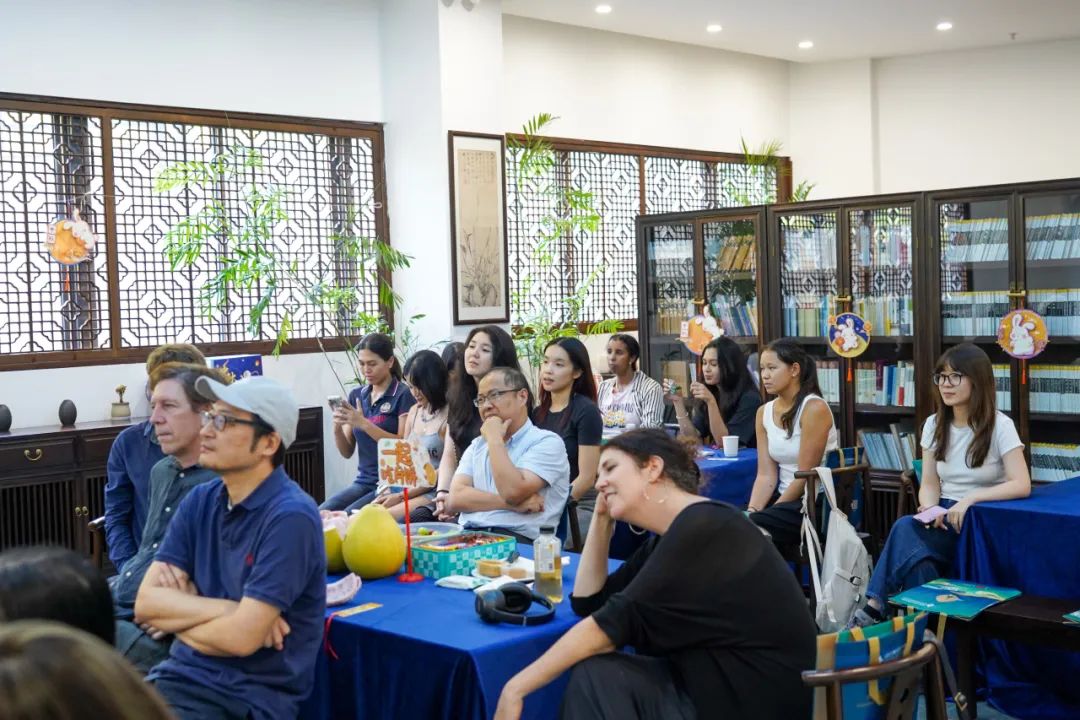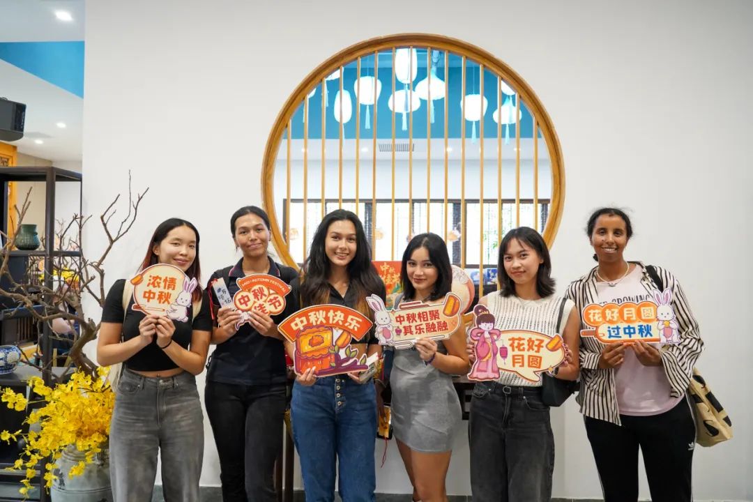 欢声笑语间,师生酌香茗、品月饼、制灯笼、猜灯谜,其乐融融。活动现场还安排了汉服介绍环节,向国际师生展示了华夏服章之美。